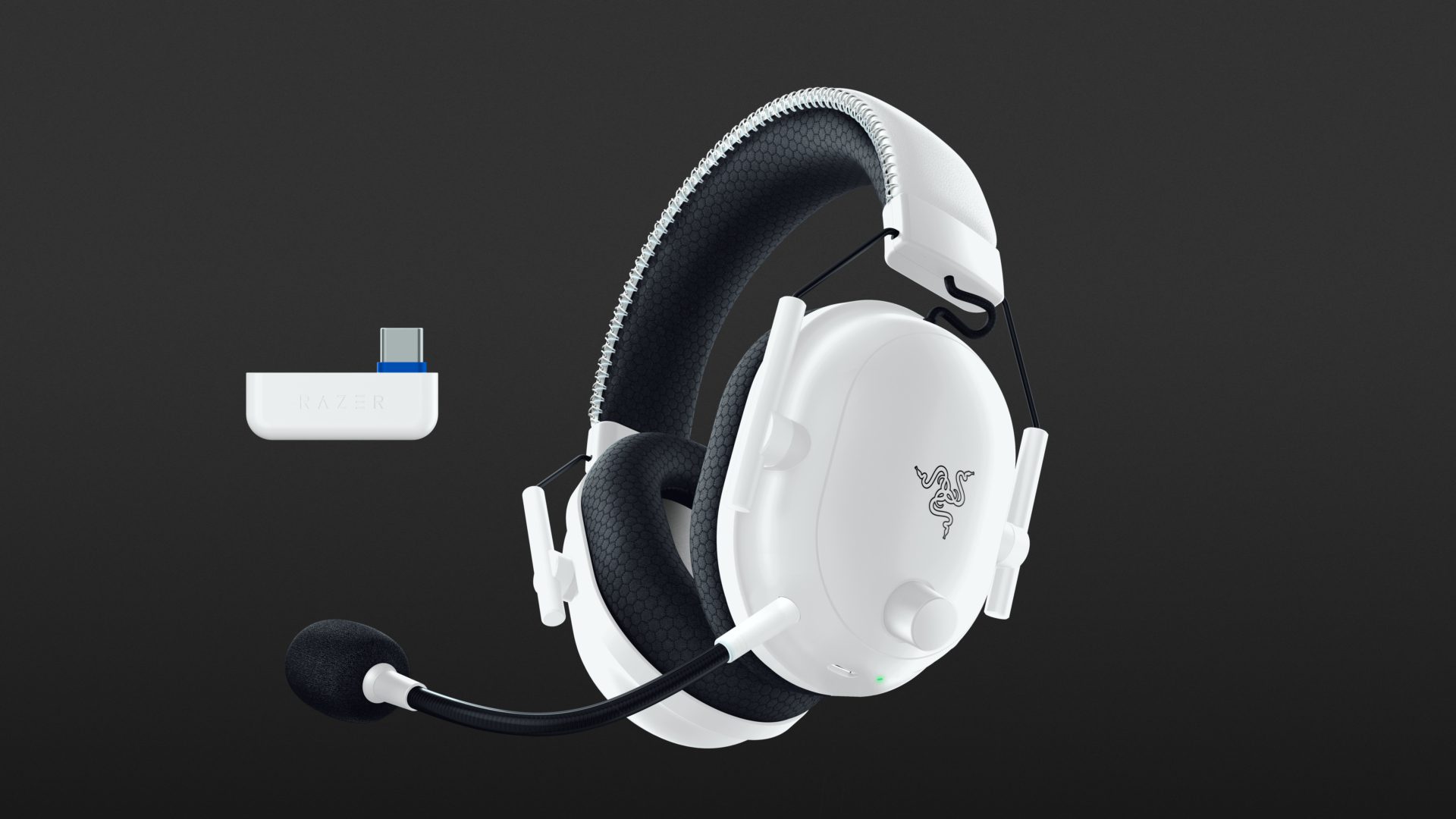 Das Gaming Headset Razer BlackShark V2 Pro für Playstation und Xbox ist im Prinzip baugleich mit der von uns getesteten PC-Version (Test). Sie gibt es wie gehabt in Schwarz oder Weiß und werden mit einem Funk-Dongle („Hyperspeed Wireless“), USB-A-auf-C-Ladekabel sowie einem ansteckbaren, biegsamen Mikrofon samt Ploppschutz geliefert.