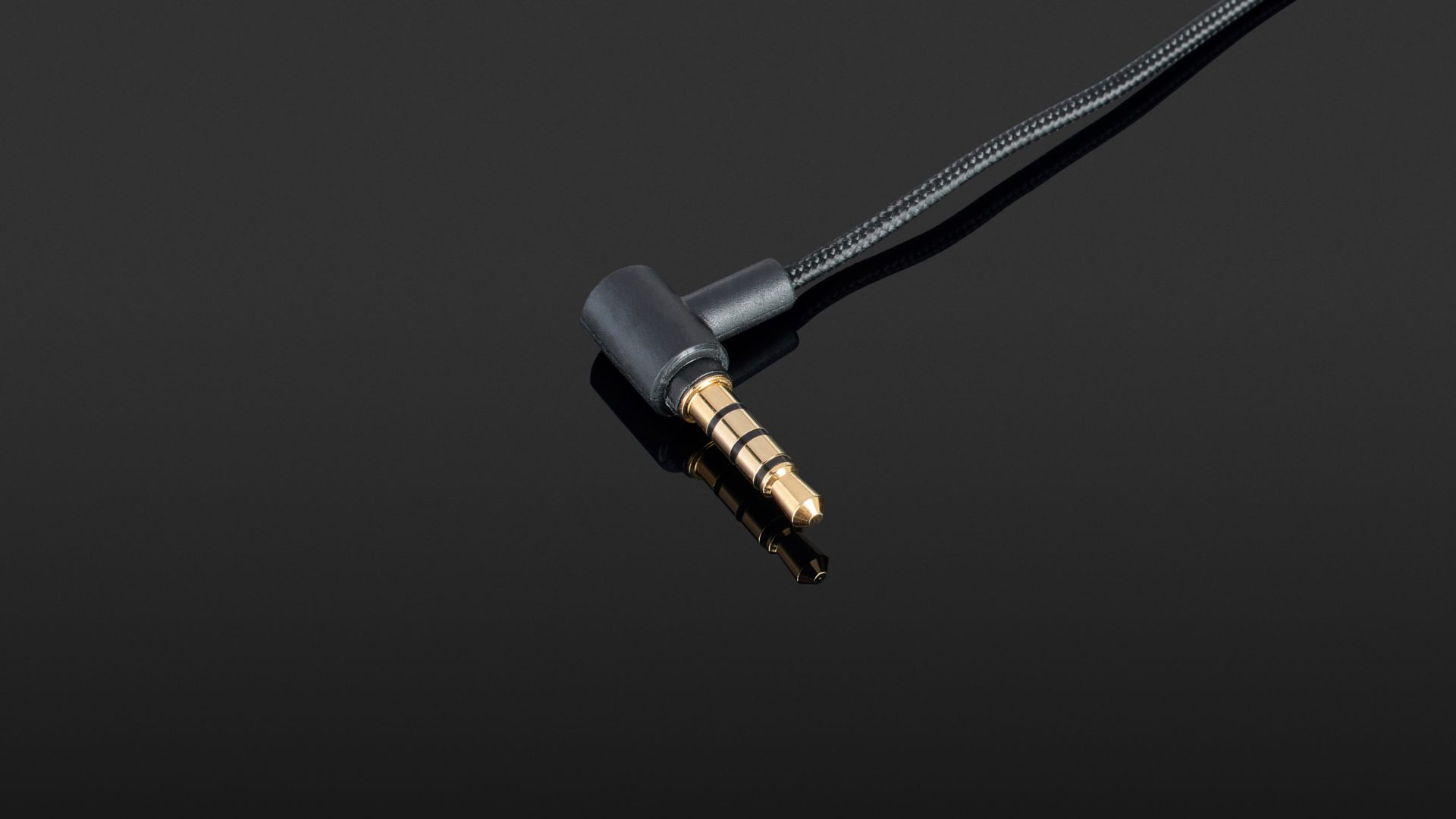 Die kabelgebundenen Kopfhörer verfügen über eine Inline-Fernbedienung auf der rechten Seite des im unteren Bereich mit Stoffummantelung geschützten Anschlusskabels mit gewinkeltem und vergoldetem 3,5-mm-Stecker.