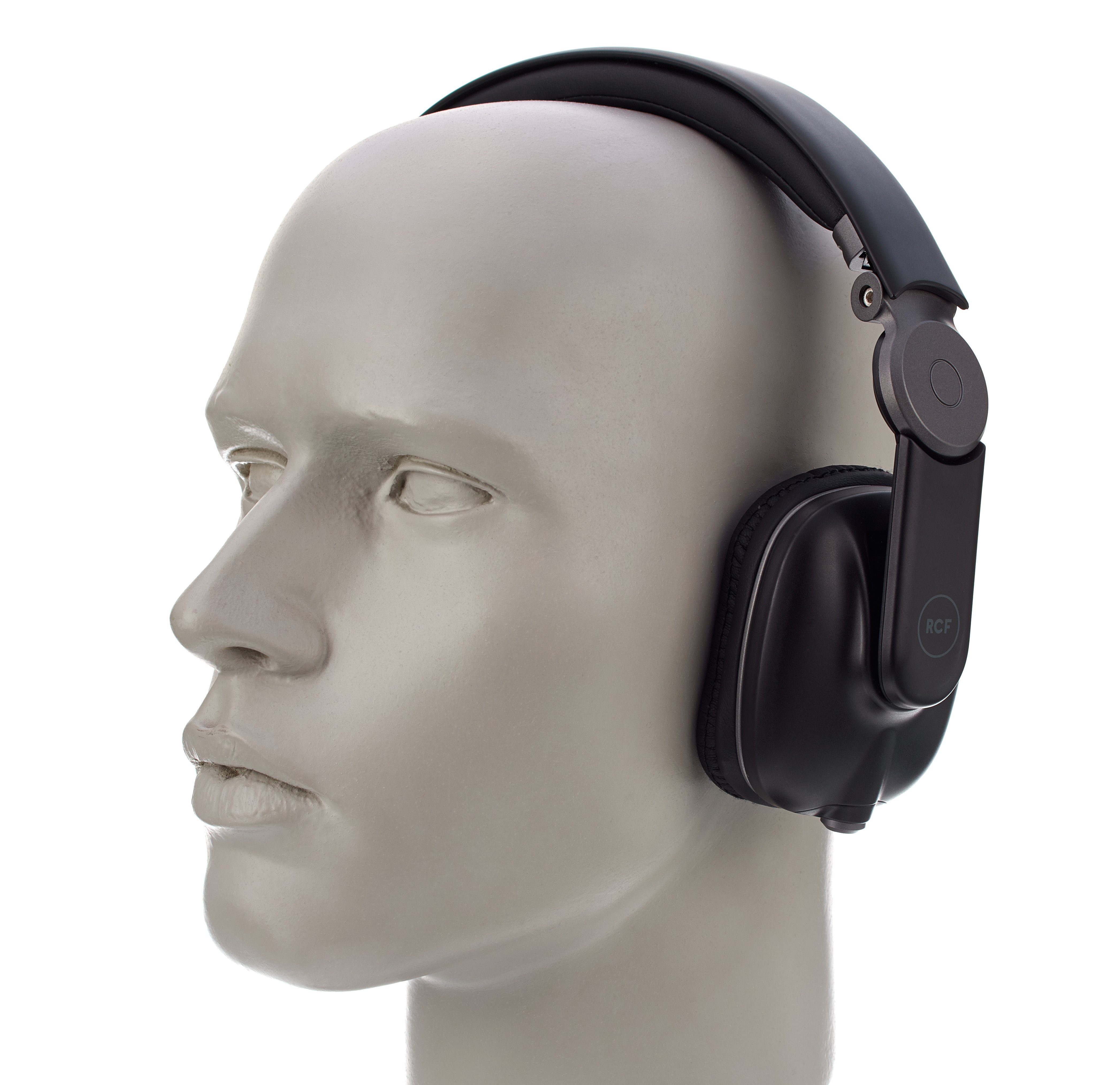 Der Kopfhörer ist in einer weißen und schwarzen (bei RCF Angel White und Pepper Black genannt) Farbvariante erhältlich, wobei besonders in der balearisch weißen Version die ungewöhnliche, quadratisch hochformatige Formgebung der Treiberchassis ins Auge fällt. Die Verarbeitung erscheint mit ihren Metallschrauben und dem mattierten Kunststoff ordentlich, ebenso wie das mitgelieferte hochwertige Case.