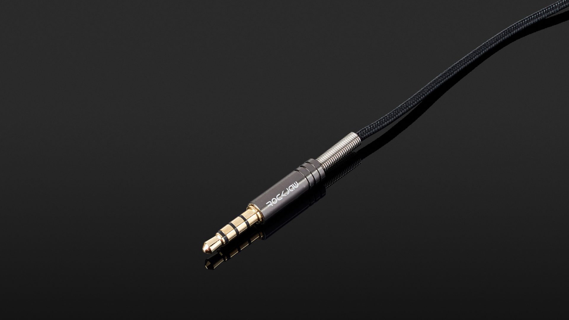 Schon optisch kann der junge Brite gefallen: Denn das Gehäuse mit seiner kompakten Bolzenform aus schwarz lackiertem Aluminium, mit dezentem Rock-Jaw-Logo auf der Außenseite, sieht ziemlich schick aus. Der Hersteller erlaubt beide Arten der Kabelzuführung: Entweder über das Ohr gelegt oder – klassisch – nach unten weggehend.