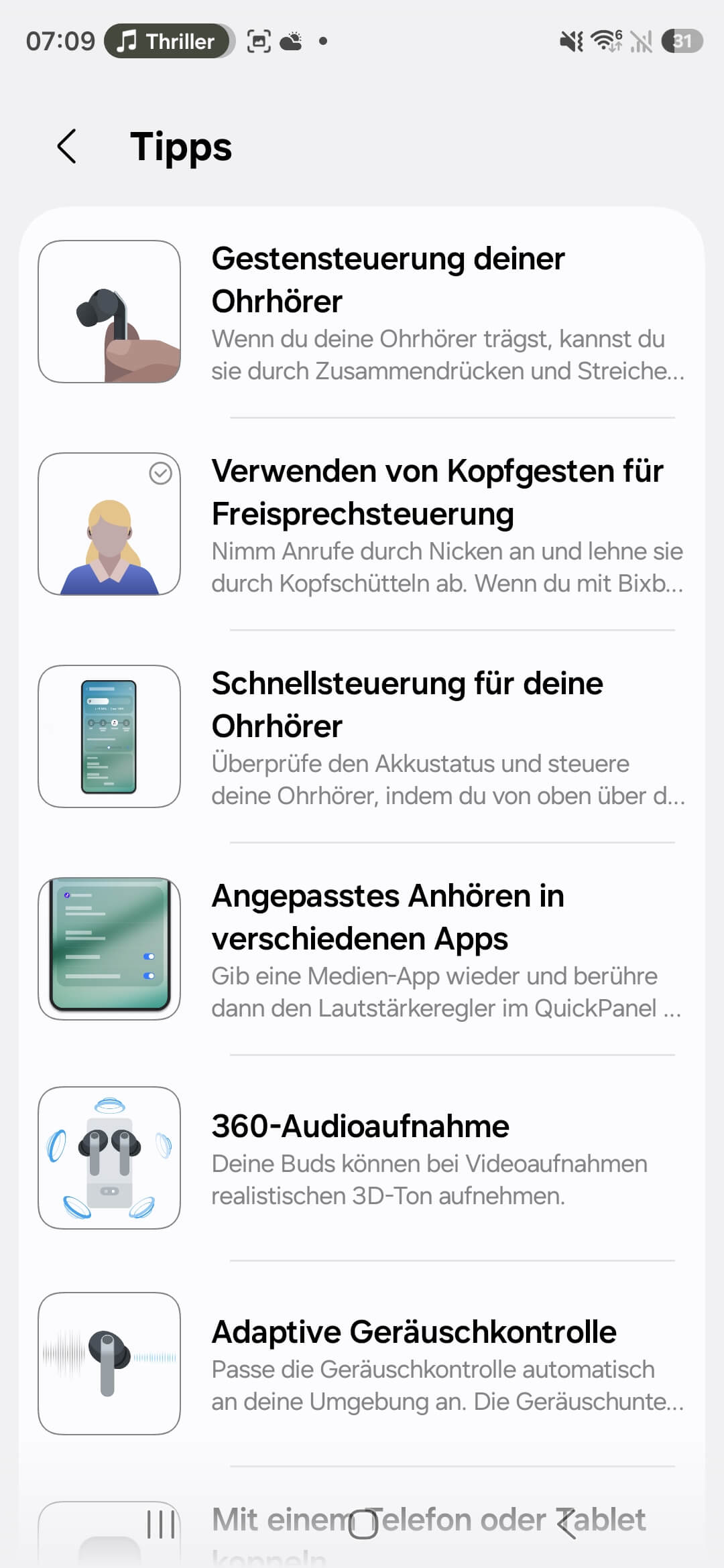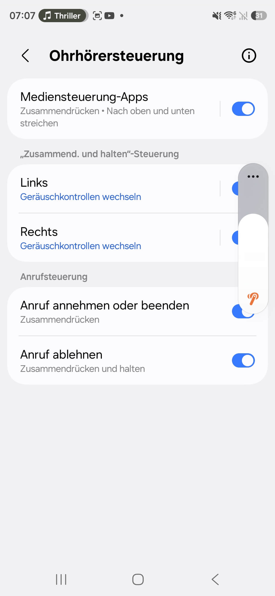 Dazu kommen Kopfgesten für Anrufe, wie man es schon von Apple kennt. Das klappt allerdings nur mit einem Samsung-Smartphone. Gleiches gilt auch für den Einsatz von KI-Assistenten. Daneben ist natürlich auch die Sprachsteuerung möglich, die ganz gut funktioniert. Wichtiger ist am Ende jedoch, dass selbst die normale Touch- beziehungsweise Drucksteuerung endlich im Alltag überzeugt. Genau das war bei früheren Generationen nicht immer so klar der Fall.