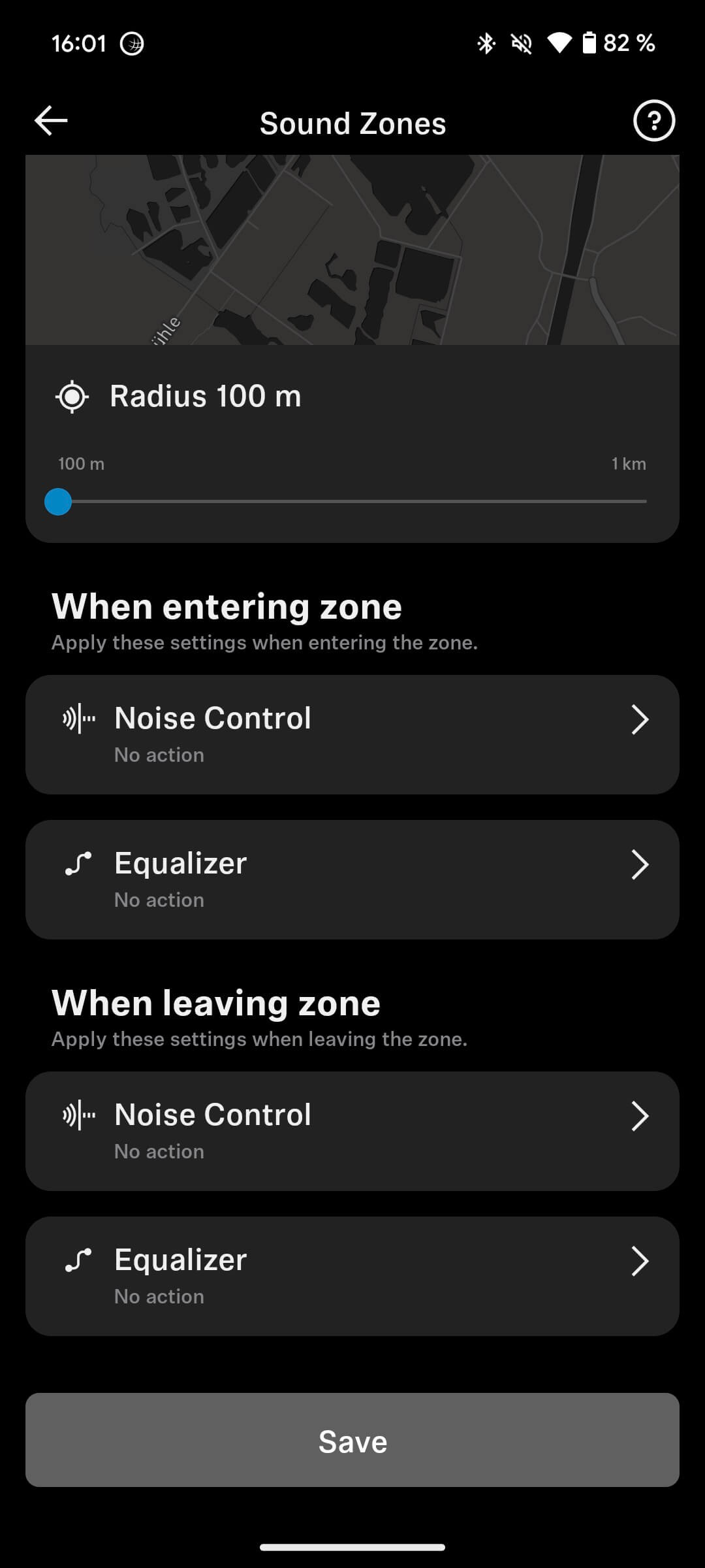 Interessant sind auch die Soundzonen, die euch entscheiden lassen, wie sich die Kopfhörer verhalten, wenn ihr bestimmte Orte betretet oder verlasst. Ob das Noise Cancelling samt individueller EQ-Einstellung ausgeht, sobald ihr euch eurem Haus nähert, könnt ihr entsprechend konfigurieren. Auf einer Map definiert ihr dazu einen entsprechenden Aktionsradius zwischen 100 und 1.000 Metern.