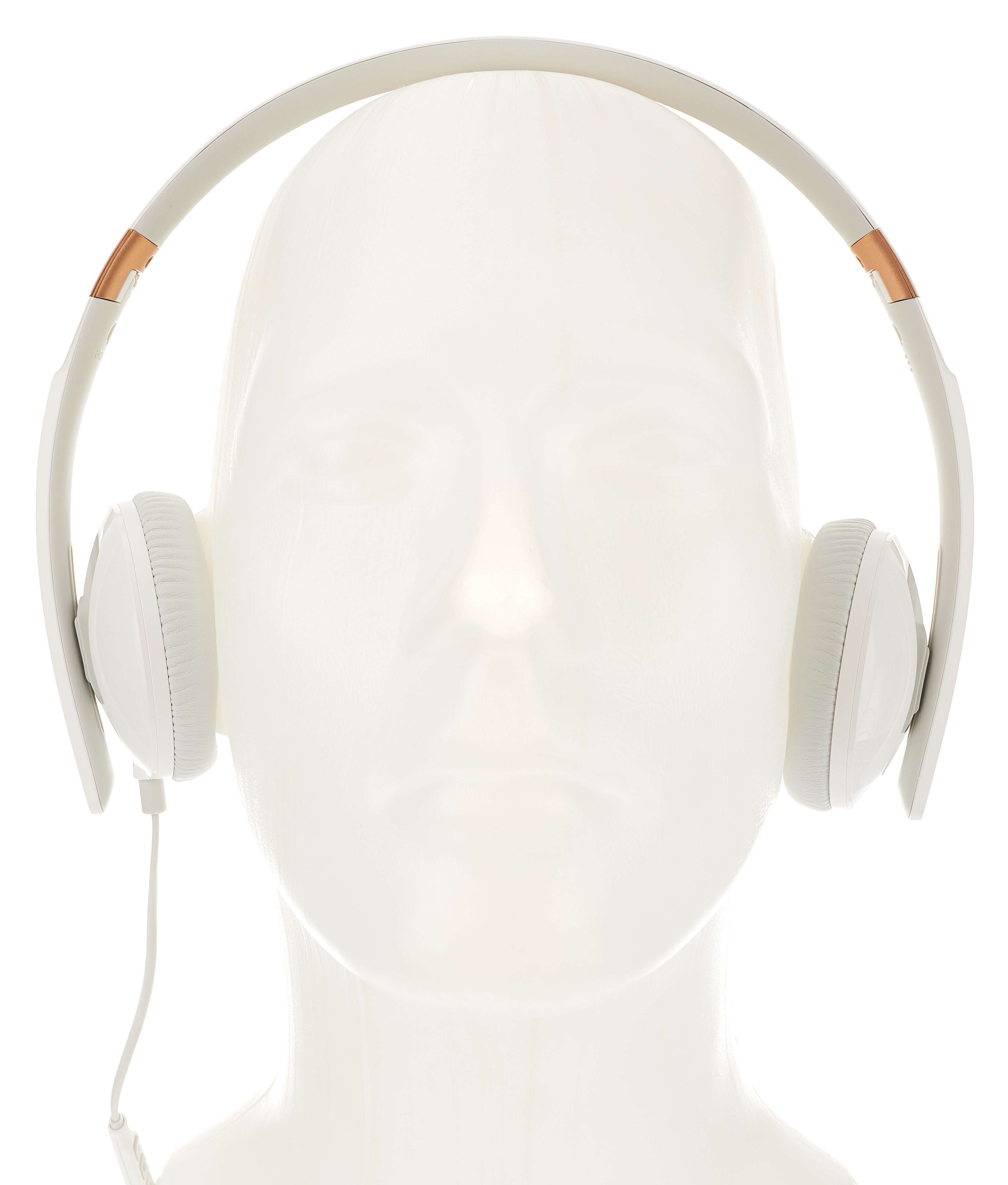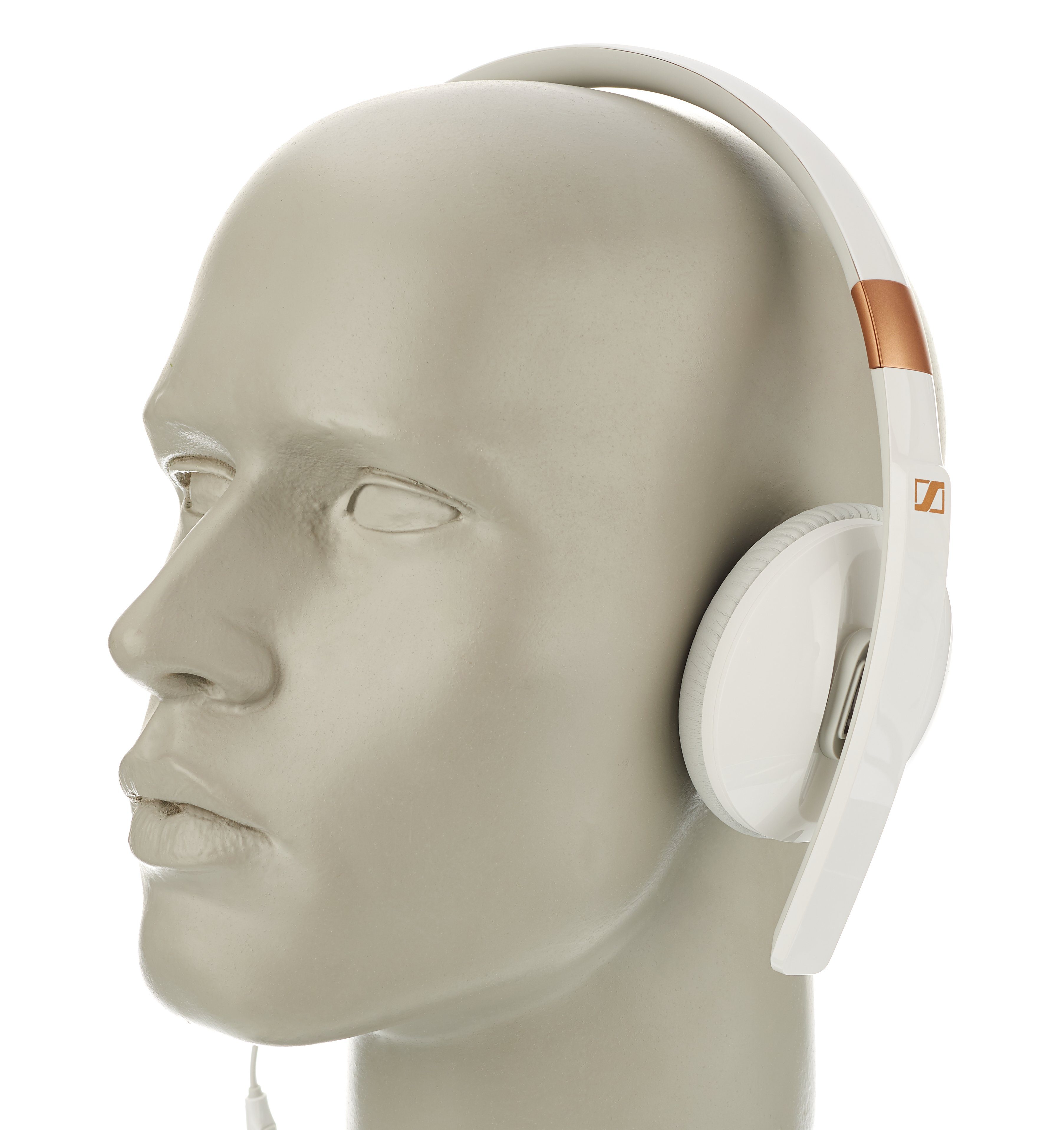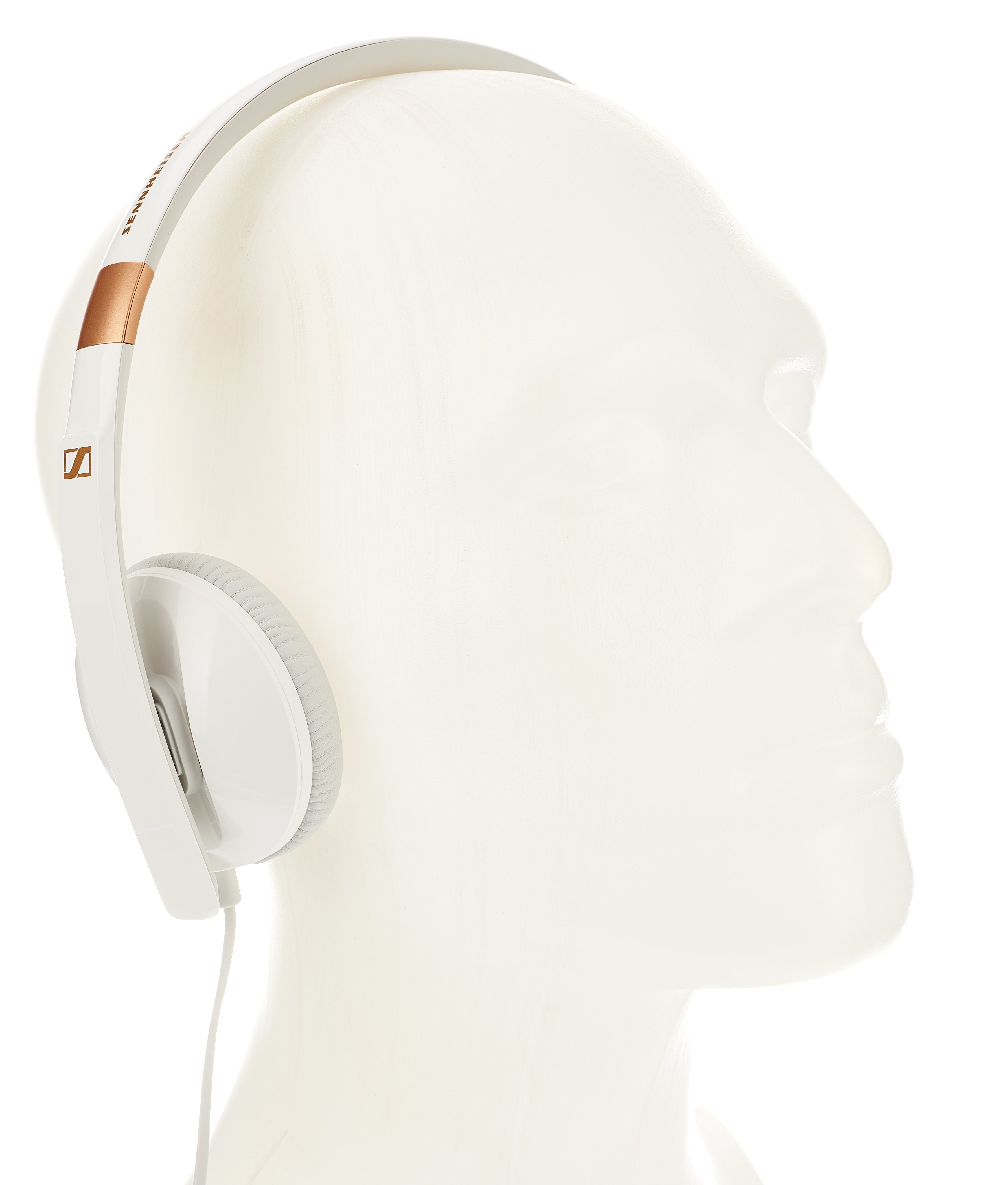 Den modischen Sennheiser gibt es in Weiß mit Akzenten von Roségold und in Schwarz, mit anthrazitfarbenen Betonungen. Er ist federleicht und passt dank Falttechnik perfekt in jede Tasche. Und auch um den Hals trägt er sich recht angenehm. Allerdings verheddern sich lange Haare sehr gern und schmerzhaft an der Stelle der Ohrmuschel, an der auf raffinierte Weise der Bügel verstellt werden kann.