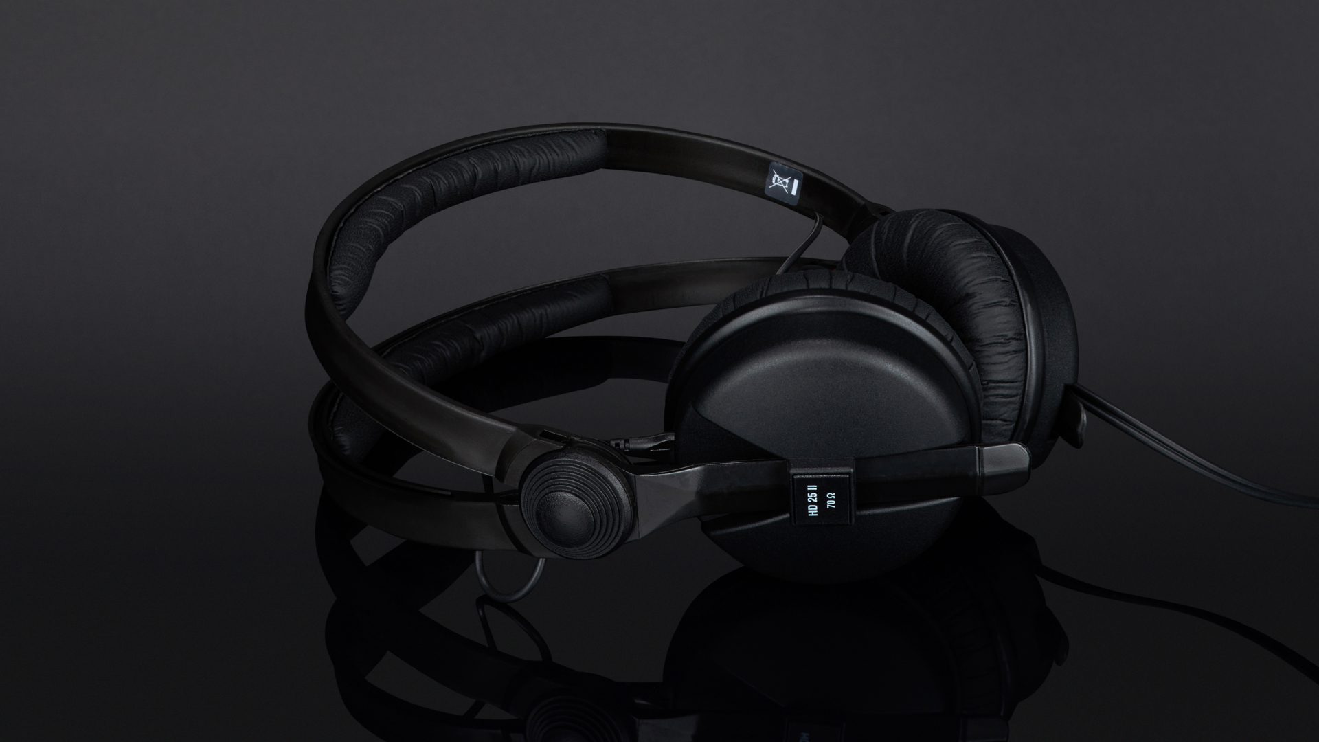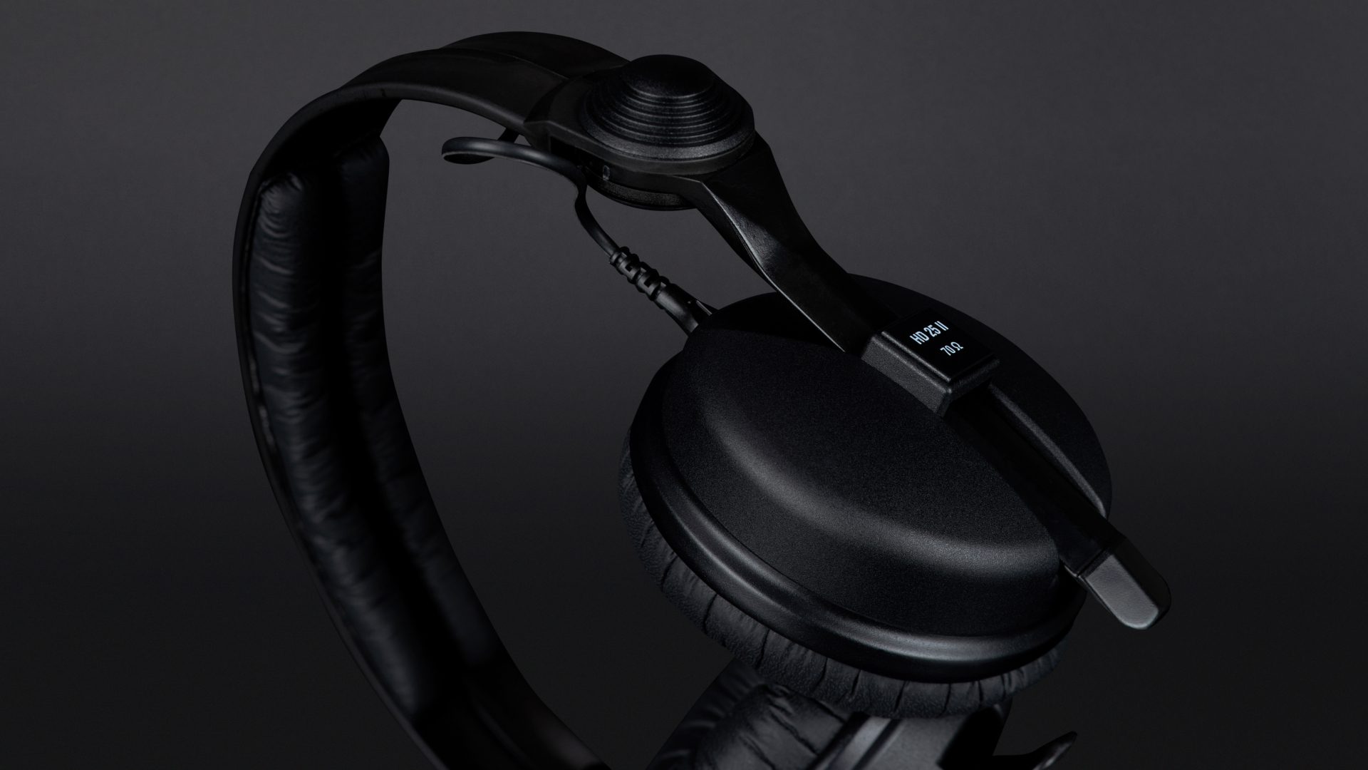 Modische Trends kontert er mit einem cleanen, damit zeitlosem und funktionellem Design. Zu dessen Besonderheiten zählt der puristische, spreizbare, mit zwei Kunstlederstreifen gepolsterte Bügel, in deren Rinne das einseitig geführte Stahladerkabel sichtbar verläuft. Der Signaltransfer vom Kabel zur Muschel erfolgt über zwei sichtbare Standard-Steckverbindungen oberhalb der kleinen Ohrkapseln, die allerdings nach einigen Betriebsstunden mit Wackelkontakten zu kämpfen haben. Die Kapseln sind an einer gerasterten Strebe montiert, um deren Höhe zu justieren. Horizontal lassen sie ein gewisses Spiel zu, um sich den Ohren individuell anzupassen. Einer der beiden, über eine Schraube fixierbaren Gelenke, die den Bügel mit den Muschelaufhängungen verbinden, erlaubt einen Neigungswinkel um circa 40 Grad. Damit ermöglicht der HD 25 II auch einseitiges Monitoring durch Abklappen einer Muschel vom Ohr. Das an der Außenseite einer Kapsel gegen Zug befestigte, gerade Kabel endet mit einem vergoldeten 3,5 Millimeter Klinkenstecker, der dank einem beigelegten vergoldeten Adapter auf 6,3 Millimeter mit jedem Zuspieler kompatibel ist.
