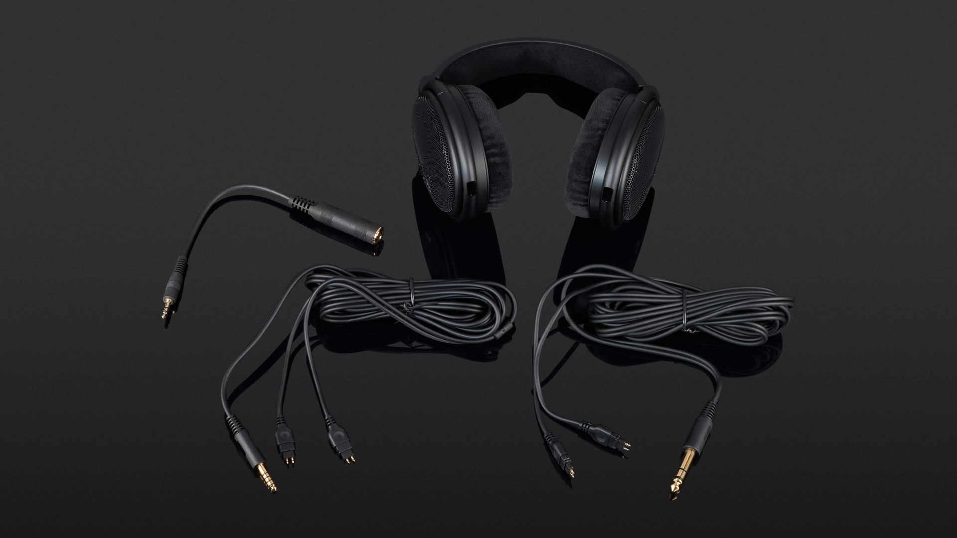 In einem stabilen Klappschuber findet sich gut gepolstert ein edler, dekorativer offener Over-Ear-Kopfhörer, der in seiner mattschwarzen Optik ein bisschen moderner als sein Vorgänger daherkommt. Geblieben sind die tadellose Verarbeitung, die elliptisch geformten Treiber und das beidseitig geführte, robuste, austauschbare Anschlusskabel aus sauerstofffreiem Kupfer mit vergoldetem 6,3-mm-Klinkenstecker, das sich über einen beigelegten Kabeladapter auch auf das 3,5-mm-Format konvertieren lässt. Ergänzend legt Sennheiser für den symmetrischen Betrieb, bei dem Plus- und Minuspol jedes Stereokanals auf getrennten Adern geführt werden, ein Anschlusskabel mit 4,4-mm-Pentaconnstecker bei, etwa für die Nutzung mit dem hauseigenen Verstärker HDV 820.