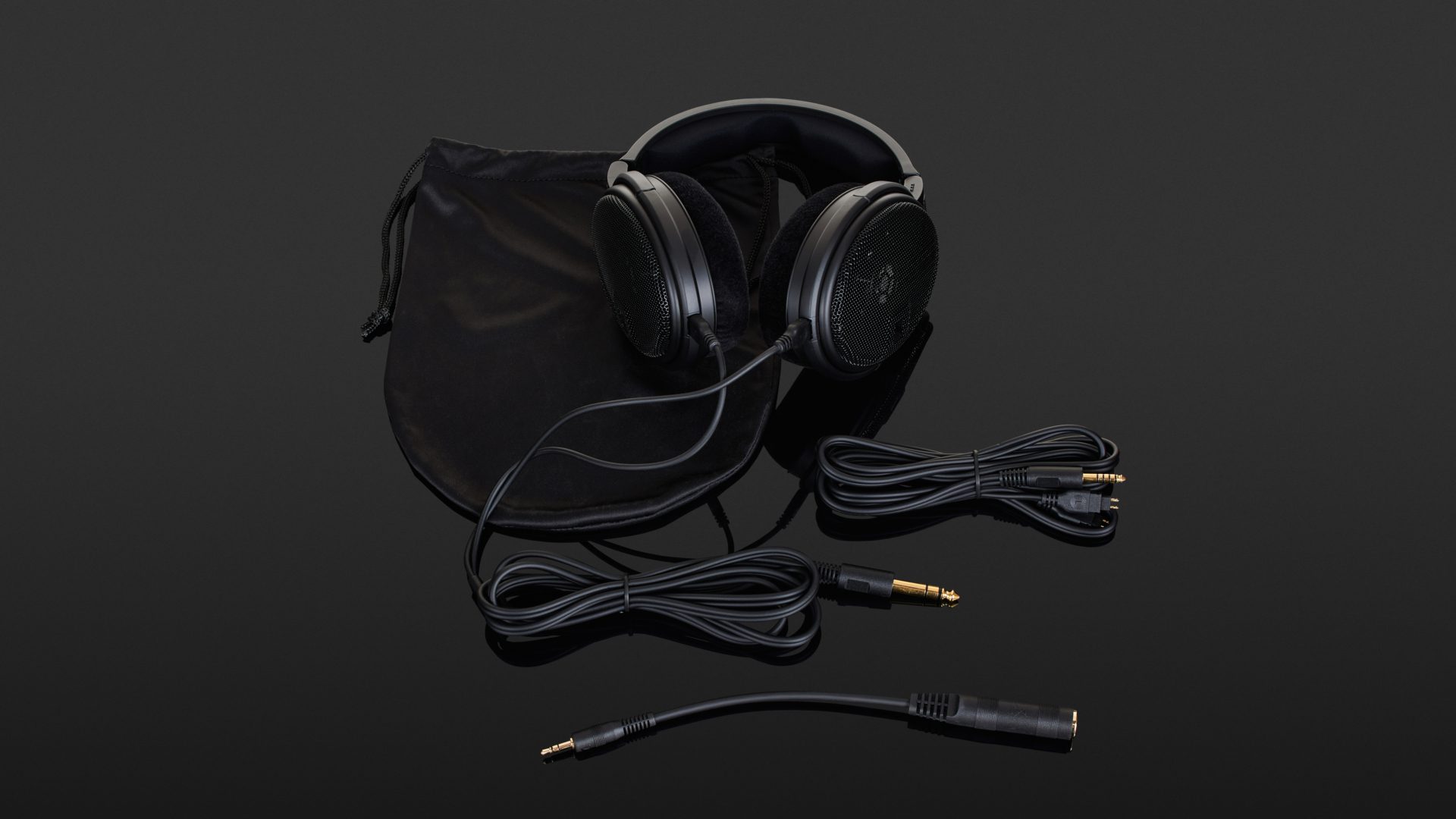 Natürlich lassen sich die beidseitig geführten Anschlusskabel tauschen: Sie sind doppelt vorhanden, einmal mit 6,3-mm-Klinkenstecker, einmal mit symmetrischem 4,4-mm-Anschluss und fallen mit einer Länge von 1,8 m inzwischen kürzer aus. Auch ein Adapter auf das 3,5-mm-Klinkenformat gehört zum Lieferumfang. Zum Transport legt Sennheiser einen weichen Tragebeutel bei und verzichtet auf die bisherige Tasche, die etwas mehr Schutz bot, dafür aber mehr Platz beanspruchte.