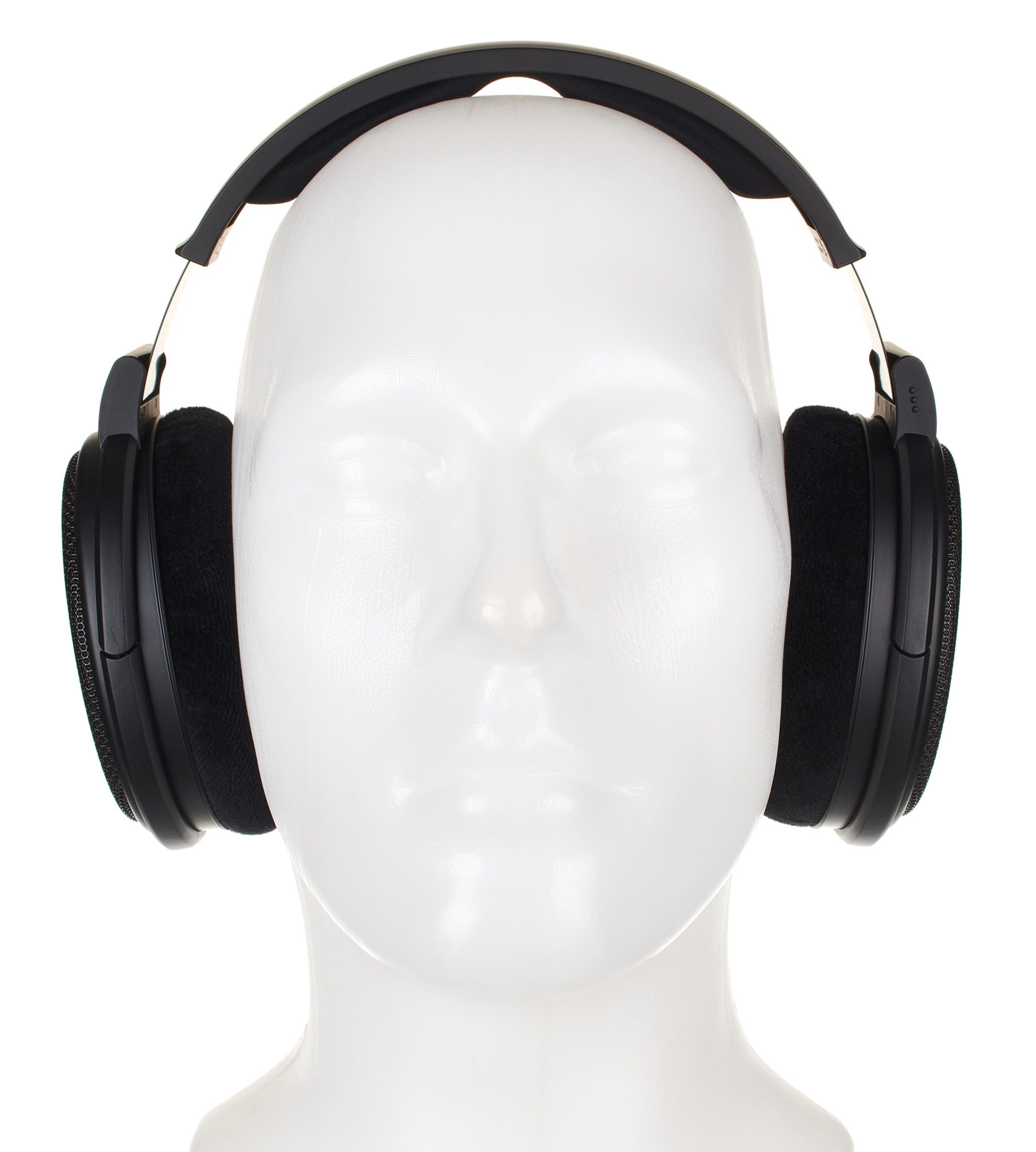 Die neue Version sieht bis auf das rot-goldene Logo quasi identisch aus. Geblieben ist das schmucke schwarze Design mit elliptischen vorwärts geneigten, kipp- und leicht drehbaren Hörmuscheln mit Velours-Polsterung, die außen durch gelochte Gitter geschützt sind. Für den längenverstellbaren Kopfbügel setzt Sennheiser auch weiterhin auf eine Silikon-Polsterung.