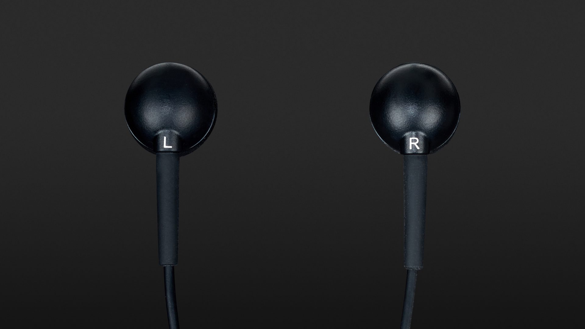 Die Schlichtheit der Verpackung findet ihre Entsprechung im Design der Kopfhörer selbst: Alles am IE 4 ist einfach nur schwarz – kein Branding, keine Logos, nix. Lediglich zwei winzige Buchstaben (L/R) oberhalb des Kabelschafts, geben Auskunft über die korrekte Platzierung im Ohr. Dezent geben sich auch die Treibergehäuse: Zwei winzige, Halbkugel-förmige Kunststoffteile, die fast komplett im Ohr verschwinden.