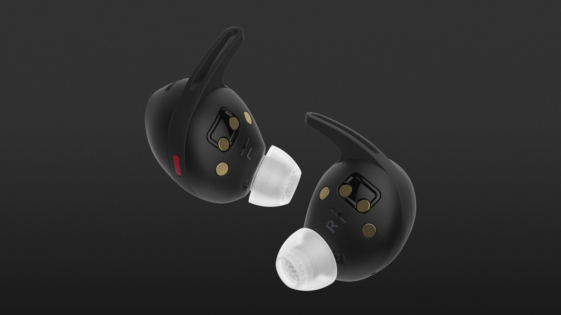 Kopfhörer für sportliche Aktivitäten müssen vor allem eins: Perfekt sitzen. Damit das gewährleistet ist, legt der Hersteller nicht nur drei Paar (transparente) Ohradapter aus Silikon, sondern auch vier Paar Ohrfinnen bei, die für zusätzlichen Halt im Ohr sorgen. Diese anzubringen ist ein bisschen fummelig und leider erst auf den zweiten Blick selbsterklärend.