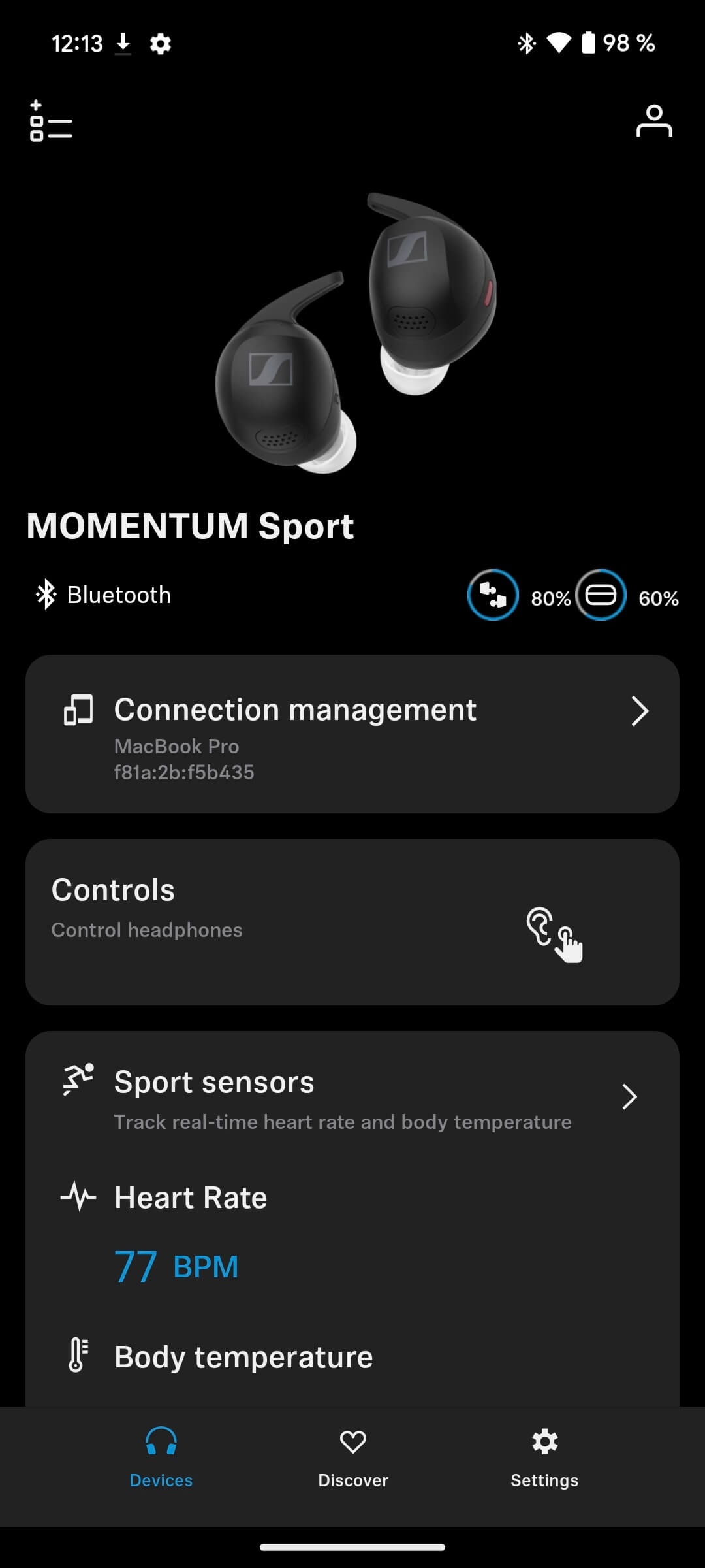 Wie bereits erwähnt, sitzen die Sensoren für die Messung der Herzfrequenz und der Körpertemperatur im linken Hörer. Diese Werte werden dann in der Smart Control App in Echtzeit dargestellt. Wie exakt gemessen wird, können wir mangels Referenzgeräten leider nicht zufriedenstellend beantworten. Dazu sind wir in der Redaktion schlicht nicht ausgerüstet. Ein Vergleich mit der Apple Watch sowie eines Huawei-Fitness-Armbandes zeigen aber ähnliche Ergebnisse. Wobei die Messung der Herzfrequenz im Ohr durchaus präziser ist als am Handgelenk. Sennheiser selbst gibt bei der Temperaturmessung eine Genauigkeit von 0,3 Grad Celsius an.