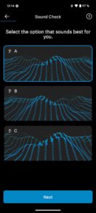 Zudem bietet die App neben Akku-schonenden Ladefunktionen einen „Sound Check“ an, indem ihr euch, während eure Lieblingsmusik spielt, durch mehrere EQ-Kurven klickt. Die Endergebnisse könnt ihr abspeichern und beliebig oft zurückholen. Das erfordert einen kostenlosen Account bei Sennheiser, um die eigenen EQ-Einstellungen sowie Soundzonen geräteübergreifend nutzen zu können.