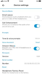 Ausgestattet ist das Testgerät mit Bluetooth 5 und einer Unterstützung der Audiocodecs SBC, AAC, aptX sowie aptX LL für verbesserte Lippensynchronität beim Filmgenuss. Ein Kabelbetrieb ist aber ebenso möglich. Hinzu kommen drei Mikrofone, die neben ihrer Funktion beim Noise Cancelling auch eine gute Sprachverständlichkeit bei Telefonaten garantieren und mit denen unterschiedliche Sprachassistenten adressiert werden können, einschließlich Alexa.