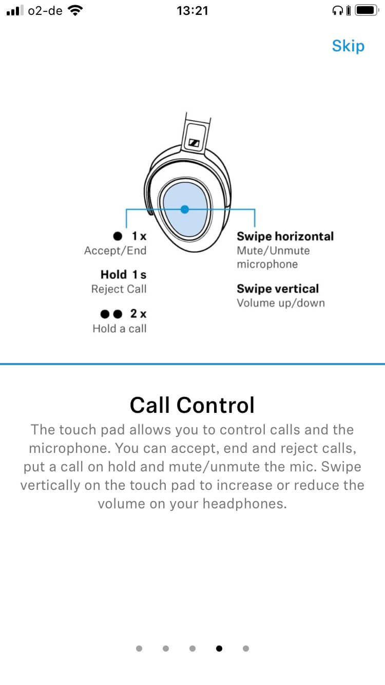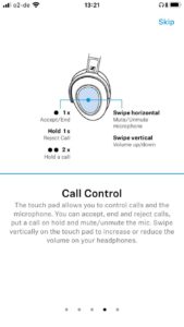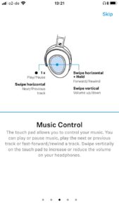 Zentrale Funktion kommt der berührungsempfindlichen Außenfläche der rechten Ohrmuschel zu: Hier kann man durch Antippen die Wiedergabe starten, anhalten sowie Telefonate abwickeln. Durch horizontales Streichen springt man zwischen den Tracks und spult vor und zurück. Vertikale Bewegungen steuern die Lautstärke. Durch Doppelklick auf die Außenfläche aktiviert sich schließlich die Transparent-Hearing-Funktion. Dabei wird die Musikwiedergabe abgesenkt und der Umgebungsklang über die Mikrofone auf die Ohren gegeben – eine Kommunikation ist damit ohne Abnehmen der Hörer möglich.