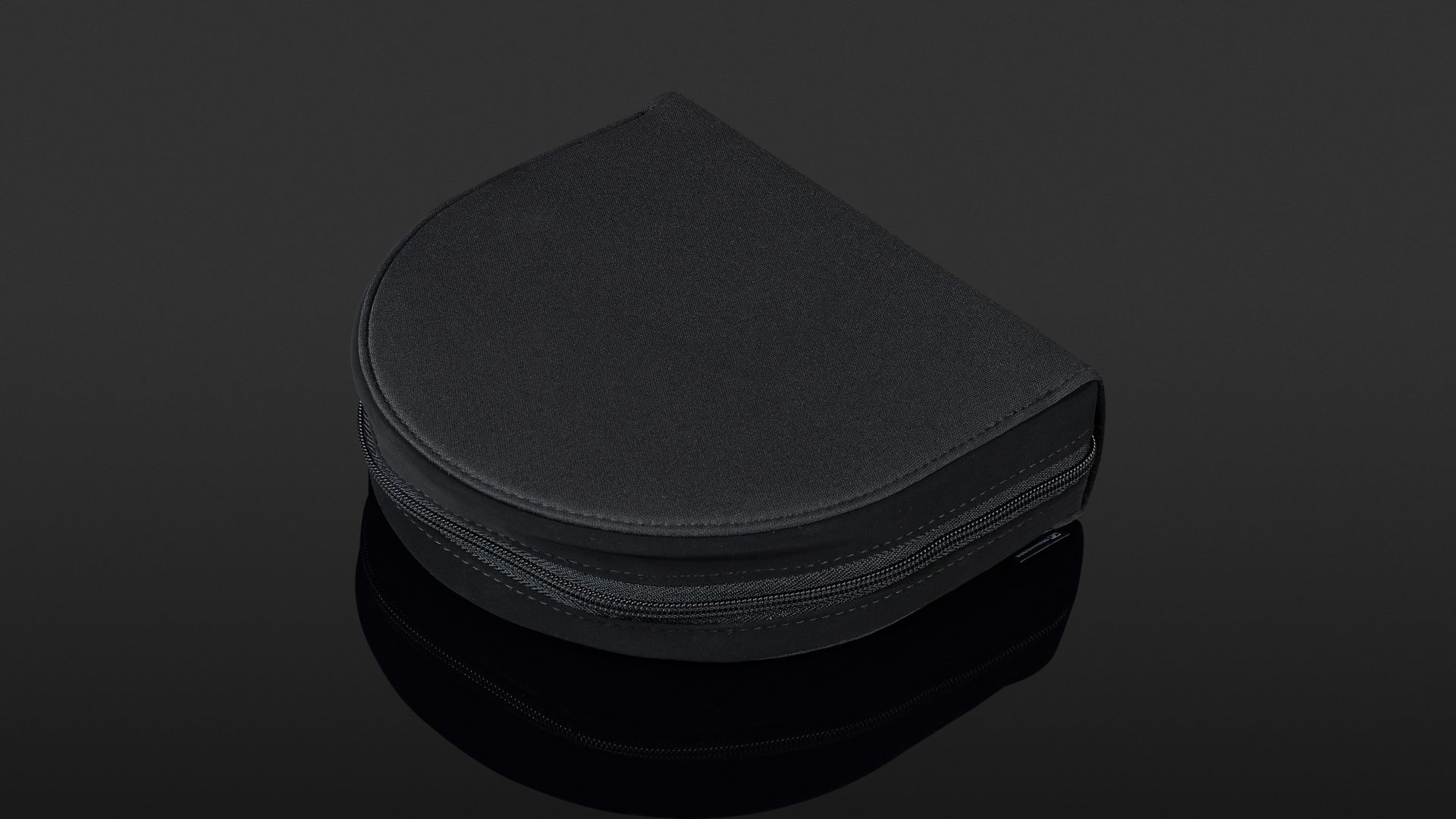 Das Design des ohrumschließenden Systems blieb weitgehend erhalten, fällt aber nun komplett schwarz aus. Die Verarbeitung überzeugt dabei ebenso wie die Polsterungen am verstellbaren Kopfband und die klapp- und drehbaren Ohrmuscheln, mit denen der Hörer in der mitgelieferten Tasche platzsparend untergebracht werden kann. Zumindest auf meinen Ohren sitzt der Kopfhörer bequem und sicher, auch über längere Zeiträume. Die Kunstlederpolsterung ist angenehm, führt aber bei höheren Temperaturen zum Schwitzen.