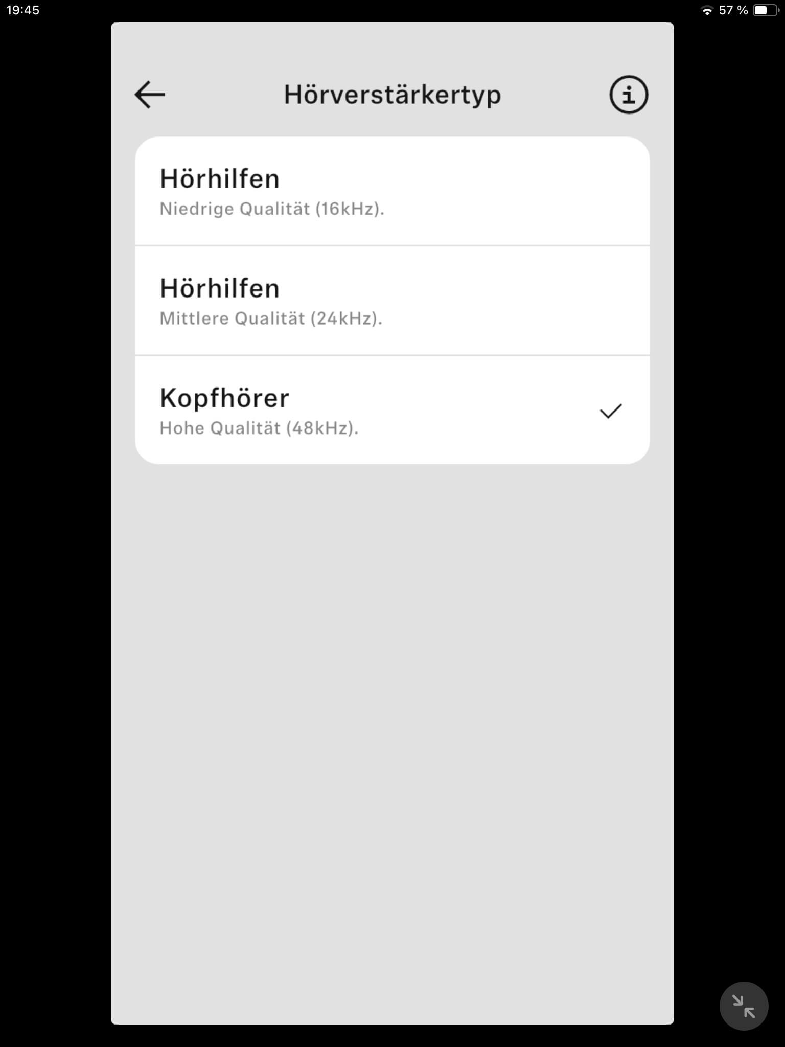 Speziell zur Gehörunterstützung kann eine weitere Voreinstellung eingerichtet werden, die per Tastendruck direkt über die Hörer aktivierbar ist. Diese Funktion unterteilt sich in ein Hörprofil, eine Sprachoptimierung und eine Rauschunterdrückung. Als Hörprofil stehen mit „Warm“, „Klar“, „Detail“ und „Hell“ vier Grundausrichtungen zur Auswahl, wobei sich „Klar“ für eine vergleichsweise neutrale, unverfälschte Klangwiedergabe empfiehlt. Im nächsten Schritt lässt sich die Sprachverständlichkeit durch einen stufenlosen Regler nach Bedarf erhöhen, was gut funktioniert und in einer mittleren Position nicht zu intensiv eingreift, wodurch ein natürlicher Höreindruck bestehen bleibt. Als weitere Maßnahme kann noch eine sogenannte Rauschunterdrückung aktiviert werden, was einen deutlichen Eingriff darstellt und das Stereosignal in Mono wiedergibt.