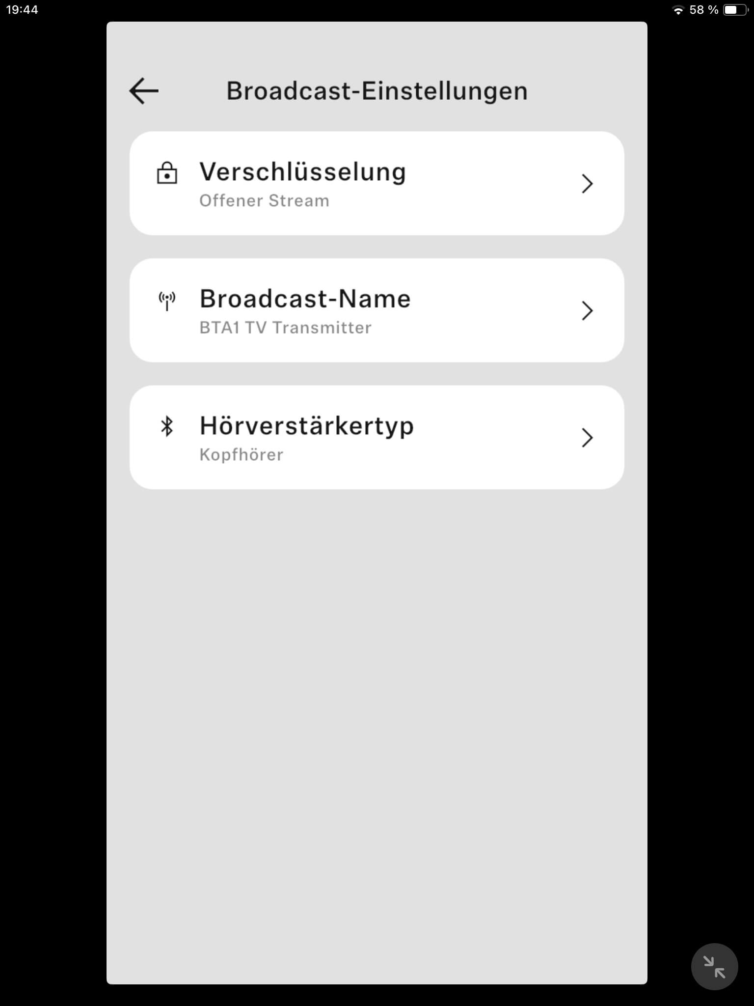 Auch der TV-Sender verfügt über eine App-Anbindung, die es ermöglicht, den Broadcast-Stream zu verschlüsseln und durch ein Passwort zu schützen. Außerdem kann die Qualität an unterschiedliche Hörverstärkertypen wie Hörhilfen oder Kopfhörer angepasst werden. Darüber hinaus lässt sich per App die Quellenauswahl konfigurieren, der Klangmodus auswählen oder die LED-Helligkeit einstellen. Zum Funktionsumfang zählt ebenfalls eine aktivierbare Lautstärkenormalisierung.
