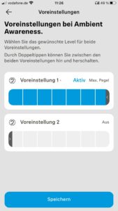 Clever gelöst dabei ist, dass die App die Verbindung zu den Kopfhörern aufrechterhält, wenn diese mit dem TV-Transmitter verbunden sind. So kann man Filme schauen und bei Bedarf „live“ Einstellungen ändern. Etwas verwirrend mag dabei sein, dass Musik-Apps auf dem Smartphone den Stream zwar an die In-Ears klaglos weiterleiten, man aber nichts hört, da das Funkprotokoll der TV-Box Priorität hat.