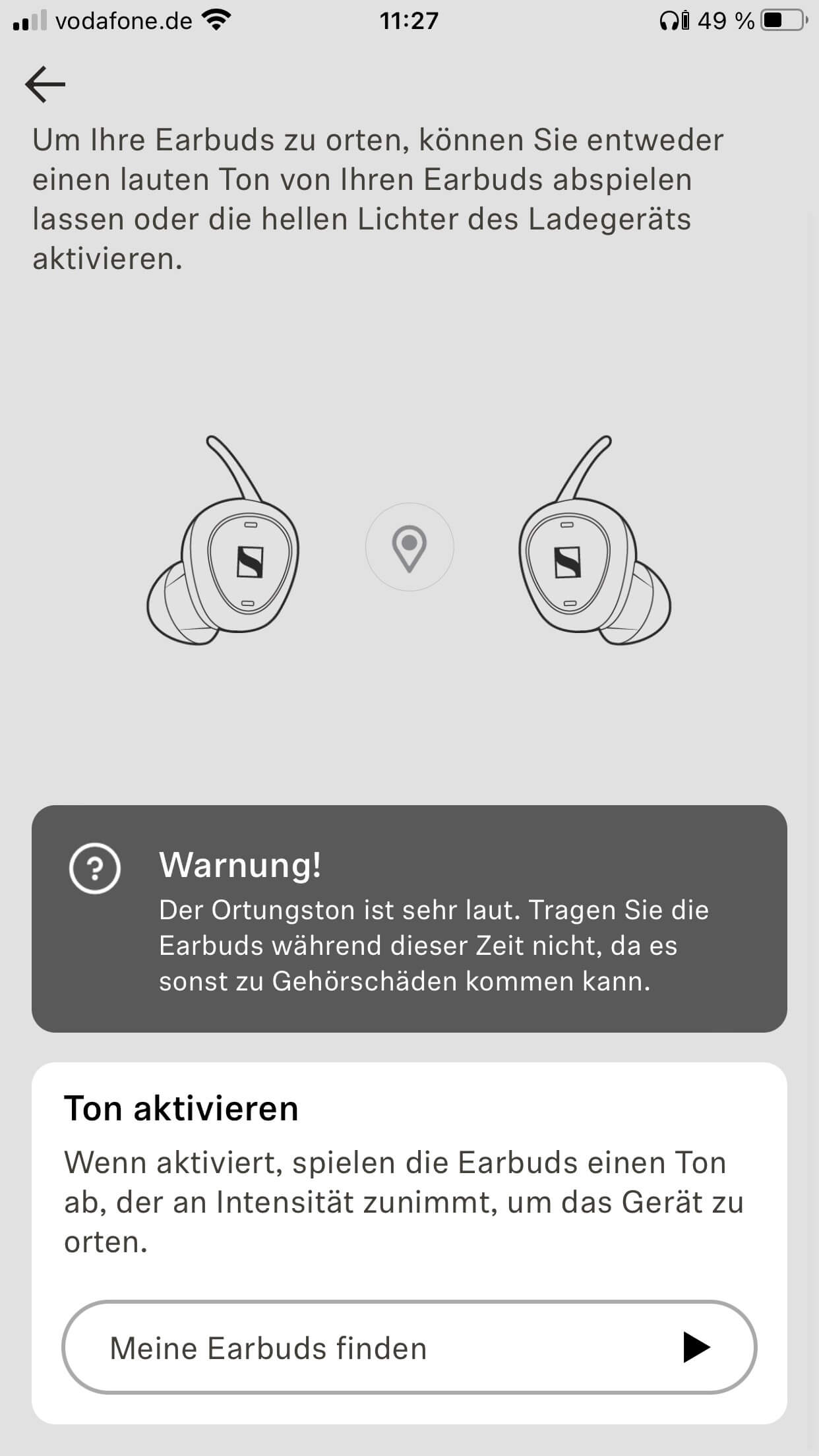 Dank Smartphone-Anbindung lässt sich das Verhalten der Sennheiser TV Clear bequem anpassen. Die kostenlose App „TV Clear“ (iOS, Android) zeigt dabei nicht nur den Akkustand der In-Ears und des Cases, auch können wir hier die Steuerung konfigurieren oder die fünf Stufen der Sprachverständlichkeitsprogramme definieren. Wer den Transparenzmodus nicht nur ein- und ausschalten, sondern zwischen zwei Stufen hin- und herschalten möchte, kann dies ebenfalls in der App erledigen. Auto-Pause de-/aktivieren, Sprachansagen auf ein Minimum reduzieren, Sprache wählen, Kopfhörer finden, Bedienungsanleitungen lesen oder eine Kontoanmeldung bei Sennheiser komplettieren den Funktionsumfang.