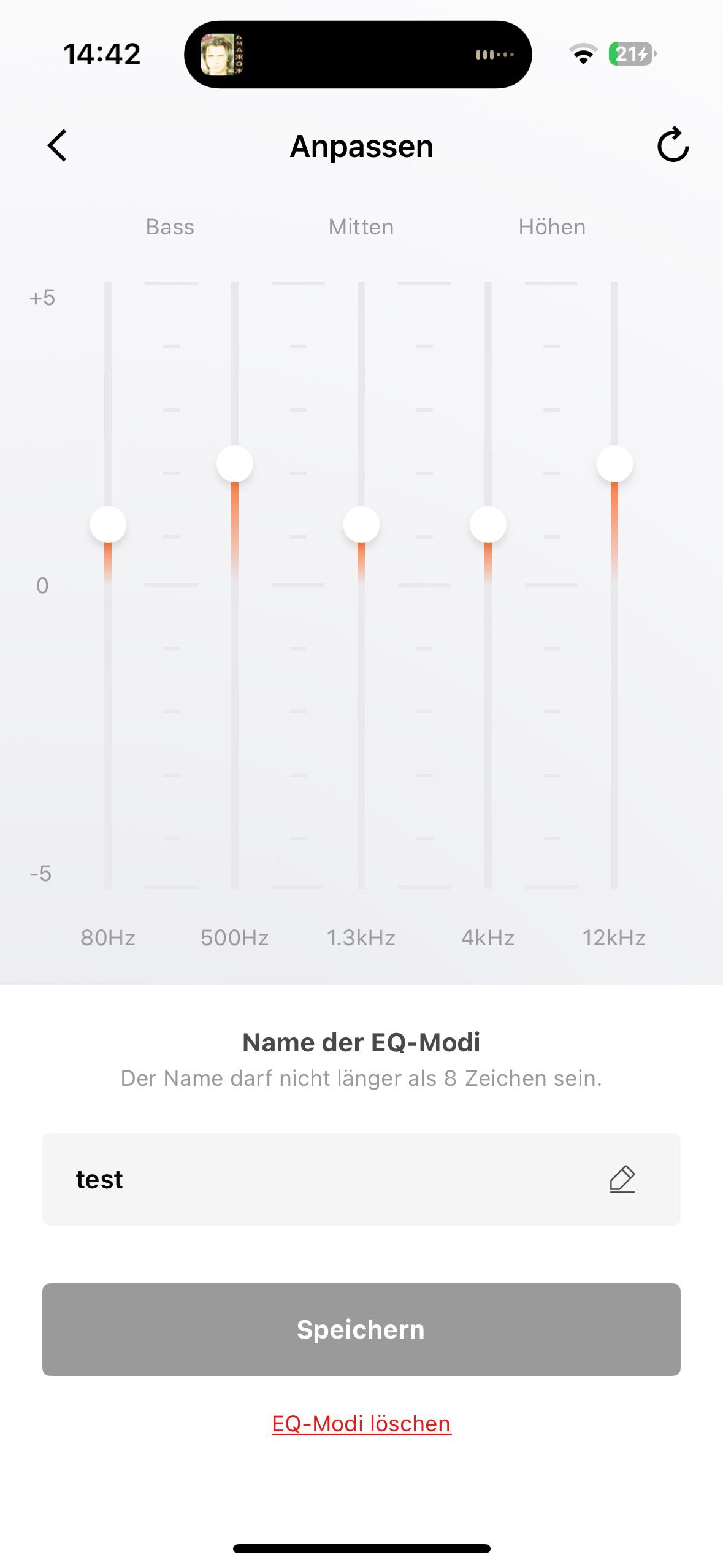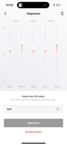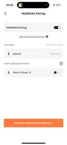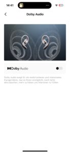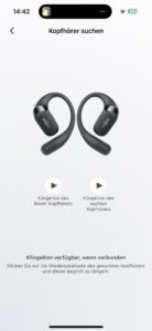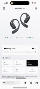 In der App gibt es dann noch einen Equalizer mit vier Presets und Speicherplätze für die individuellen Einstellungen, die ihr am 5-Band-EQ vornehmen könnt. Es lässt sich Dolby-Atmos aktivieren, um entsprechend Abgemischtes „richtig“ zu hören, oder mit „Kopfhörer suchen“ die verbundenen aber verschwundenen Open-Ears durch anschwellende Töne in der Sporttasche zu finden. Dazu gibt es eine Multipoint-Liste zur manuellen Auswahl verknüpfter Geräte und die Möglichkeit, Updates einzuspielen. Was fehlt, ist eine Start/Stopp-Automatik, wenn man die Kopfhörer abnimmt und ein Abschalttimer generell.