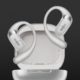 Kopfhörer, Ladecase, Dokumentation und ein kurzes USB-C-Kabel – so werden die Shokz OpenFit 2+ im plastikfreien Karton geliefert. Zur Auswahl stehen die Farben Schwarz oder Grau. Im rundlich-flachen Case, welches auch kabellos (Qi) geladen werden kann, befinden sich die Open-Ears mit den flexiblen Ohrbügeln, deren Form durch einen von sehr weichem Silikon ummantelten Nickel-Titanium-Gestell gebildet wird und sich recht mühelos um die Ohren schlingen lässt. Als Brillenträger müssen sich beide Bügel den Platz hinter dem Ohr teilen, das ist aber völlig problemlos.