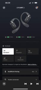 Auch der zentrale Mittenbereich und die Höhen sind stimmig und nicht überbetont. Entsprechend treten keine ungewollten Härten bei der Wiedergabe auf. Kurz und gut: Für einen Open-Ear-Kopfhörer setzt der Shokz OpenFit 2 neue Maßstäbe. Allerdings gelten diese Aussagen für ruhige Umgebungen. Im mobilen Betrieb mindern Umweltgeräusche den Geräuschabstand und spürbar die Klangqualität. Das betrifft einerseits die Dynamik und Detailauflösung, weshalb der OpenFit 2 sein Zuhause vor allem bei Pop, Rock und anderen modernen Genres hat. Ein weiteres Manko ist die Basswiedergabe im mobilen Einsatz. Tiefe Frequenzen verschwinden im Umfeld und die Wiedergabe beginnt vor allem im Hochbass. Und da schaffen auch Anhebungen per Equalizer kaum Abhilfe.