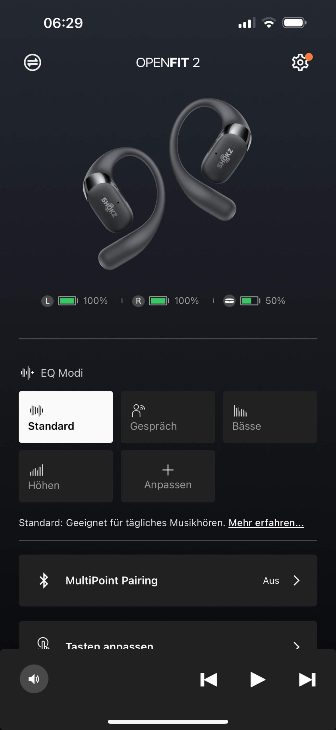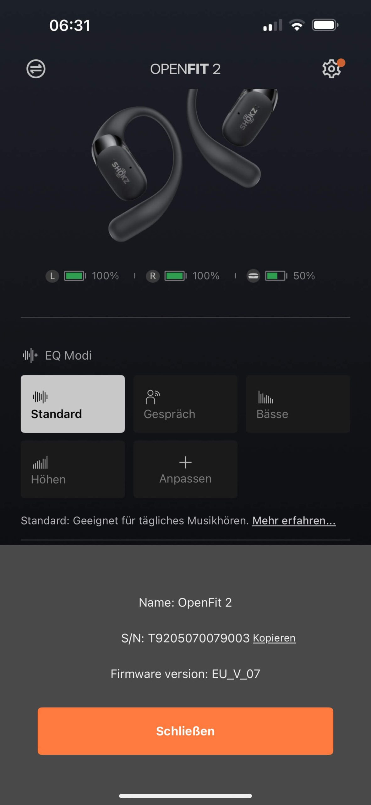 Positive Worte finde ich auch für die stabile Bluetooth-Funkstrecke sowie die erhöhte Laufzeit. Mit elf Stunden sind die OpenFit 2 zwar keine Langläufer, sollten aber einen kompletten Bürotag mitspielen. Nach langen Spaziergängen mit ausgiebigen Telefonaten und Musikkonsum bewerte ich die angegebenen Werte als realistisch.