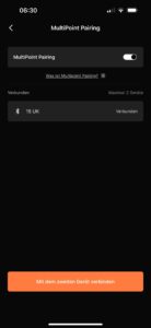 Zu den weiteren Funktionen gehört die Option zum Multipoint Pairing, die insbesondere im Büroalltag von nutzen ist. Hinzu kommt eine praktische Suchfunktion für verlegte Kopfhörer und die Möglichkeit, Firmware-Updates ausführen (Stand: EU_07V_07).