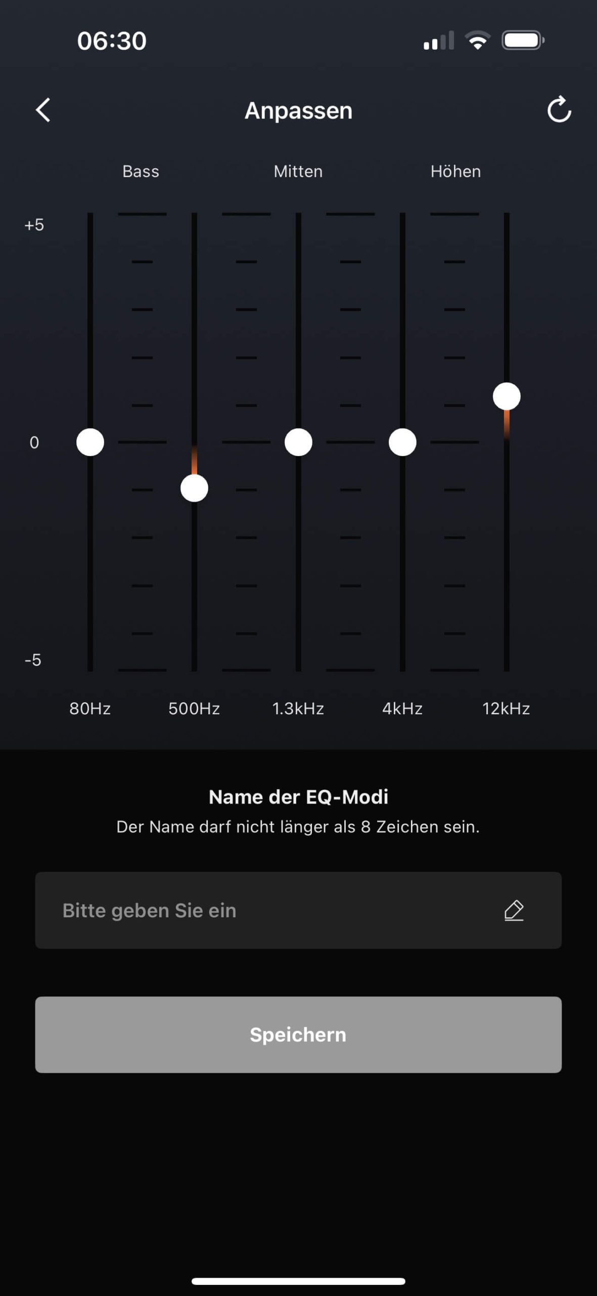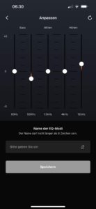 Weiterhin bietet die App die Möglichkeit, die Klangwiedergabe mithilfe von Preset-EQs sowie eigenen Einstellungen der fünf EQ-Bänder geschmacklich anzupassen.