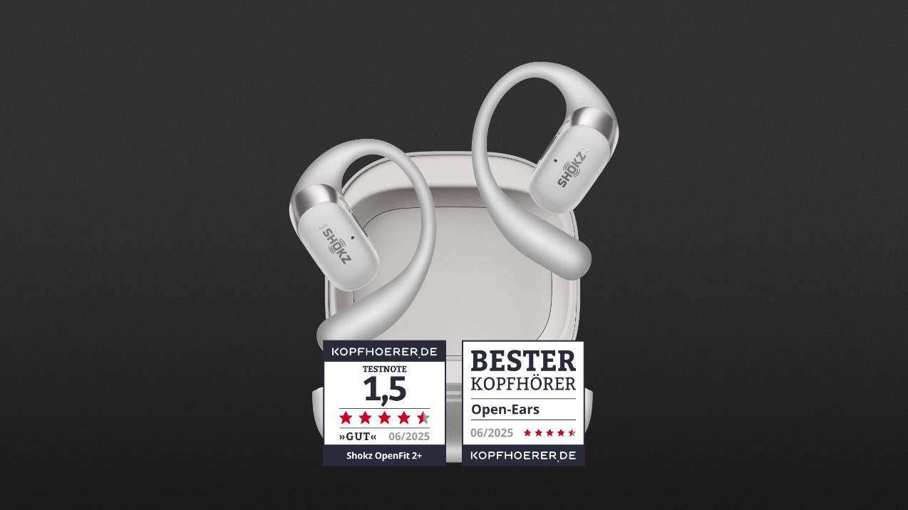 Mit dem Shokz OpenFit von 2023 zeigte der ursprünglich auf Knochenschallkopfhörer spezialisierte chinesische Hersteller 2023 einen der ersten True-Wireless-Open-Ear-Kopfhörer, der mit erhöhtem Anspruch an die Klangqualität ins Rennen ging. In der Zwischenzeit präsentierte Shokz den OpenFit Air und liefert nunmehr die aktualisierte Version OpenFit 2 und die OpenFit 2+ aus.