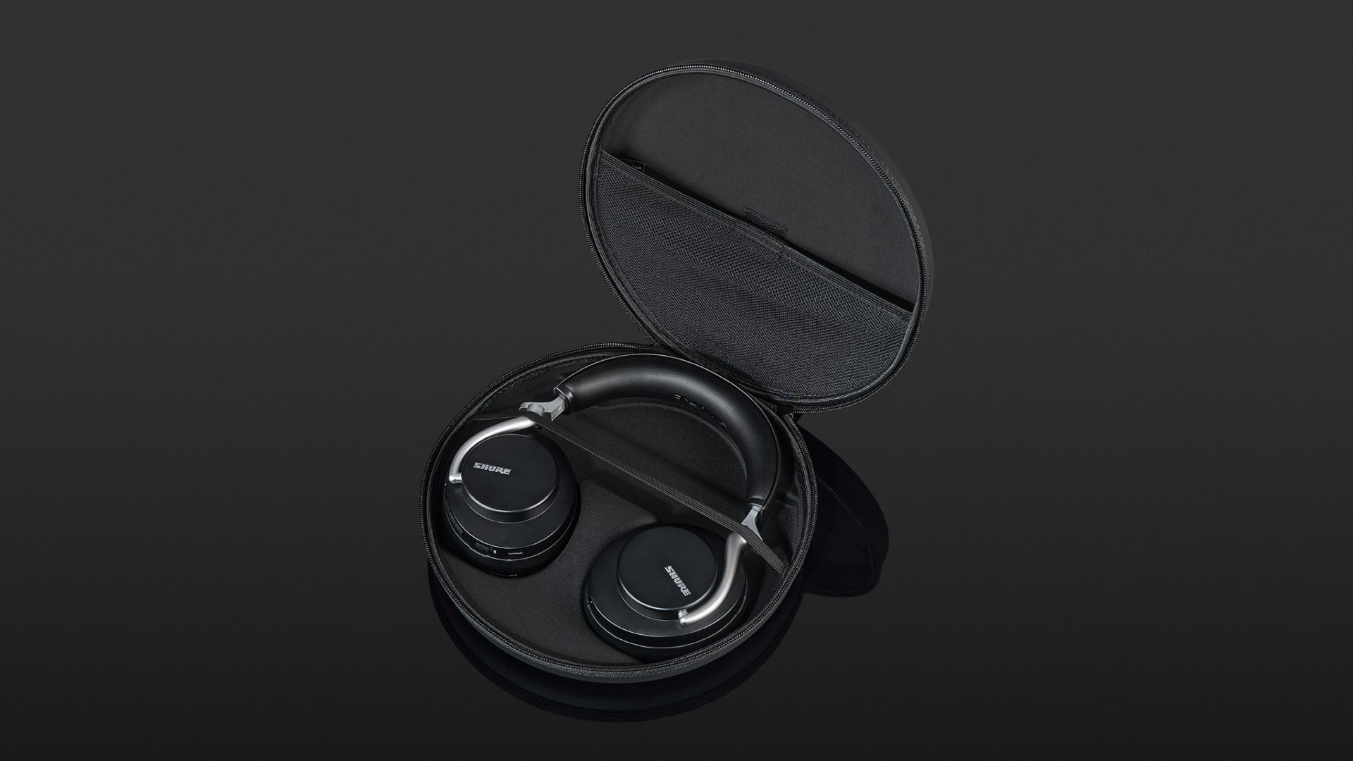 Der Lieferumfang des Shure Aonic 50 bietet alles, was man nach dem Kaufen des Kopfhörers benötigt, um ihn einsetzen, transportieren und lagern zu können. Neben den Headphones selbst ist ein Transport-Softcase dabei. Das matt-schwarze Behältnis hat einen Tragegriff aus Stoff und ist innen mit einer Formschale für den Kopfhörer und einem Zubehör-Netzfach ausgerüstet, das sich mittig per Klettverschluss schließen lässt. Da die Hörschalen des Aonic 50 um 90 Grad drehbar sind, lässt sich der Kopfhörer flach im Case verstauen. Dort wo die Metallstreben des Kopfbügels durch ihre Beweglichkeit mit den Hörschalen in Kontakt kommen und daran scheuern könnten, sind im Auslieferzustand kleine Schaumstoff-Pads verklebt. Sie schützen den Kopfhörer beim Transport vor mechanischer Abnutzung des Materials und kleinen Kratzern. Hier beweisen Shure einen Blick für sinnvolle Details.