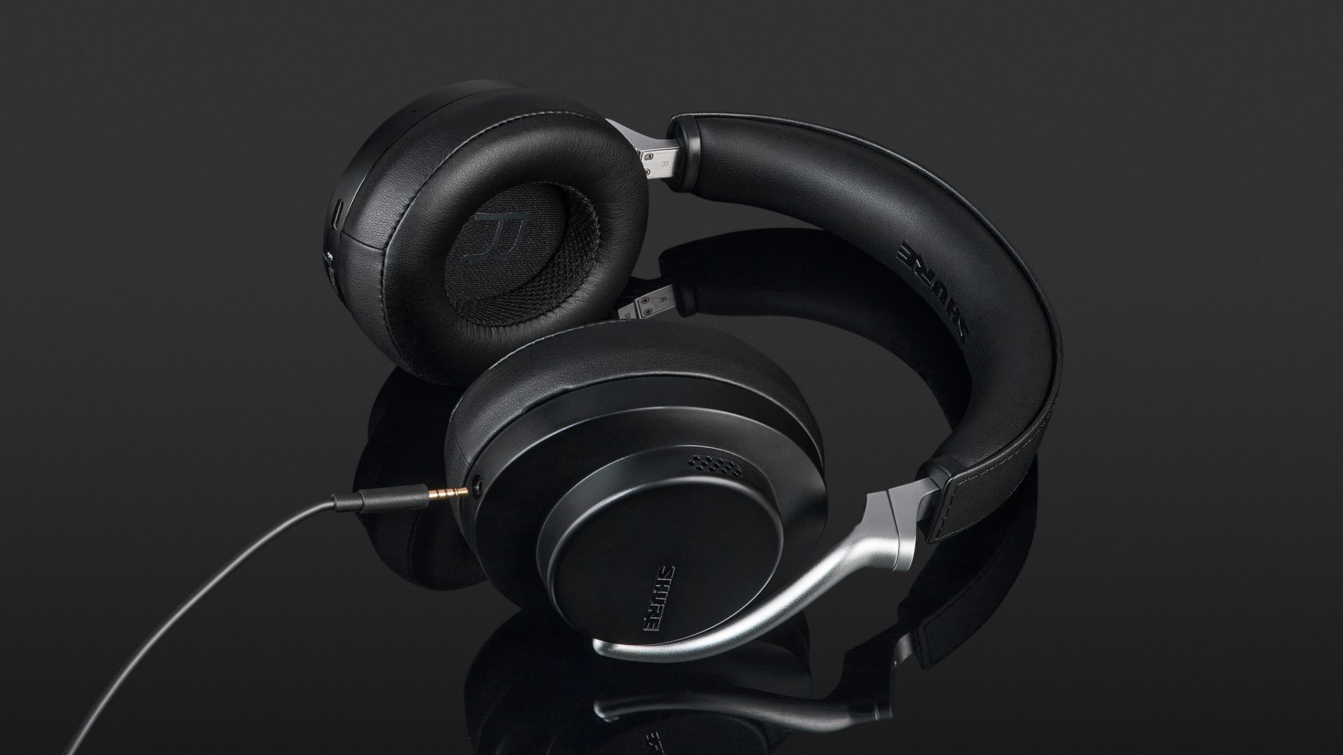 Das Design des Shure Aonic 50 ist in meinen Augen gelungen. Eine weiche Formgebung mit geschwungenen Linien, matten Oberflächen und ansprechender Farbgestaltung unterstreicht den Anspruch des Kopfhörers, zur gehobenen Headphones-Mittelklasse zu gehören. Je nach Variante sind die Ohr- und Kopfbügelpolster des Aonic 50 braun oder schwarz. Zum Einsatz kommt ein feiner Materialmix aus Aluminium, weichem Kunstleder und Elementen aus Plastik, die keinesfalls „billig“ aussehen. Ob passgenaue Drehgelenke, gratfreie Metallteile oder genähte Kunstleder-Ummantelungen der Polster – die Verarbeitung ist durchweg einwandfrei. Der Kopfhörer ist dank Kopfbügel aus gebürstetem Aluminium leicht und doch robust. Die Mattierung verhindert, dass Fingerabdrücke auf den Oberflächen zu sehen sind. Einzig die auf der Innenseite sichtbare Kabelführung verwundert mich. Das mag servicefreundlich sein, ist aber in meinen Augen ein minimaler Schönheitsfehler.