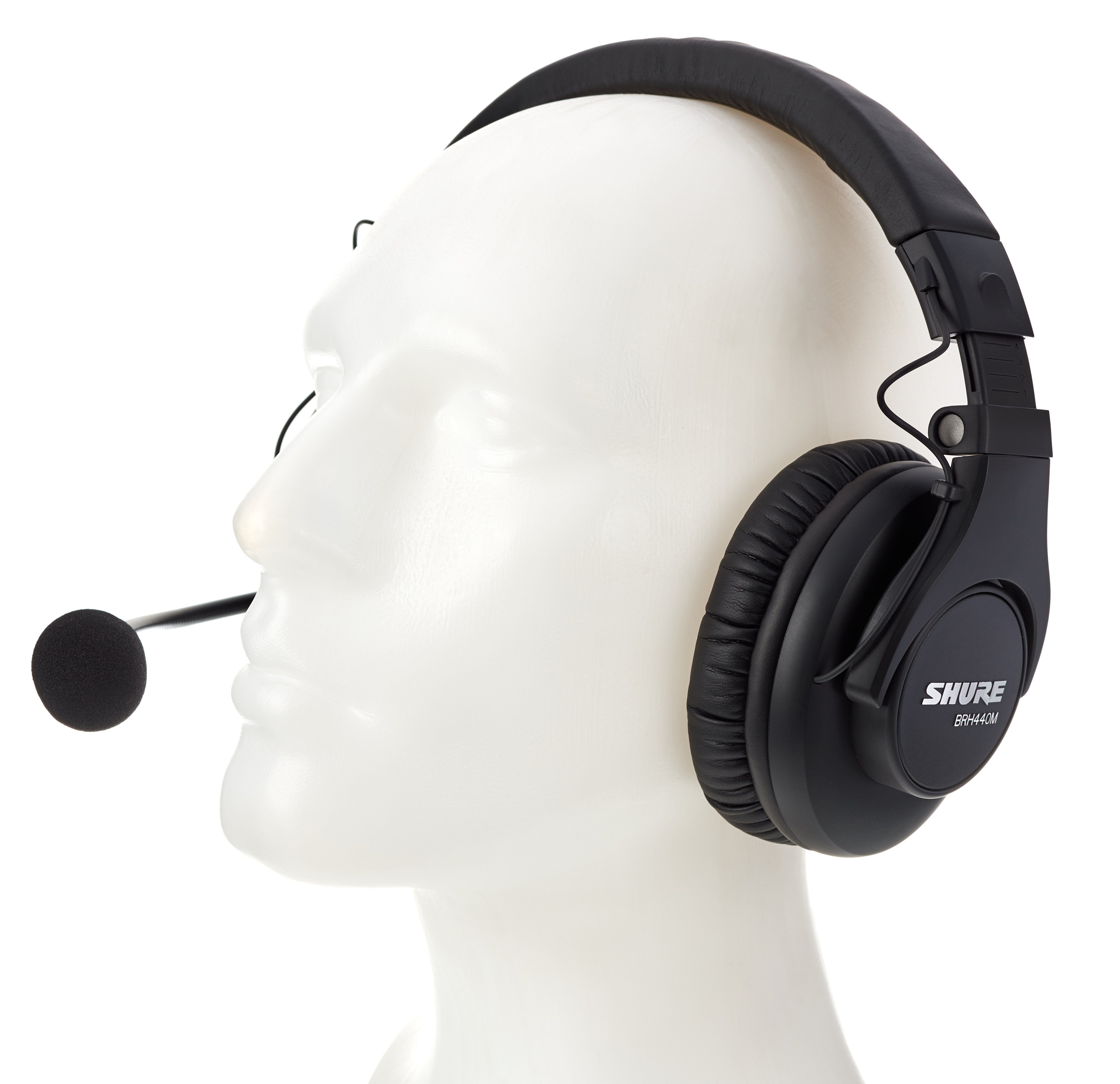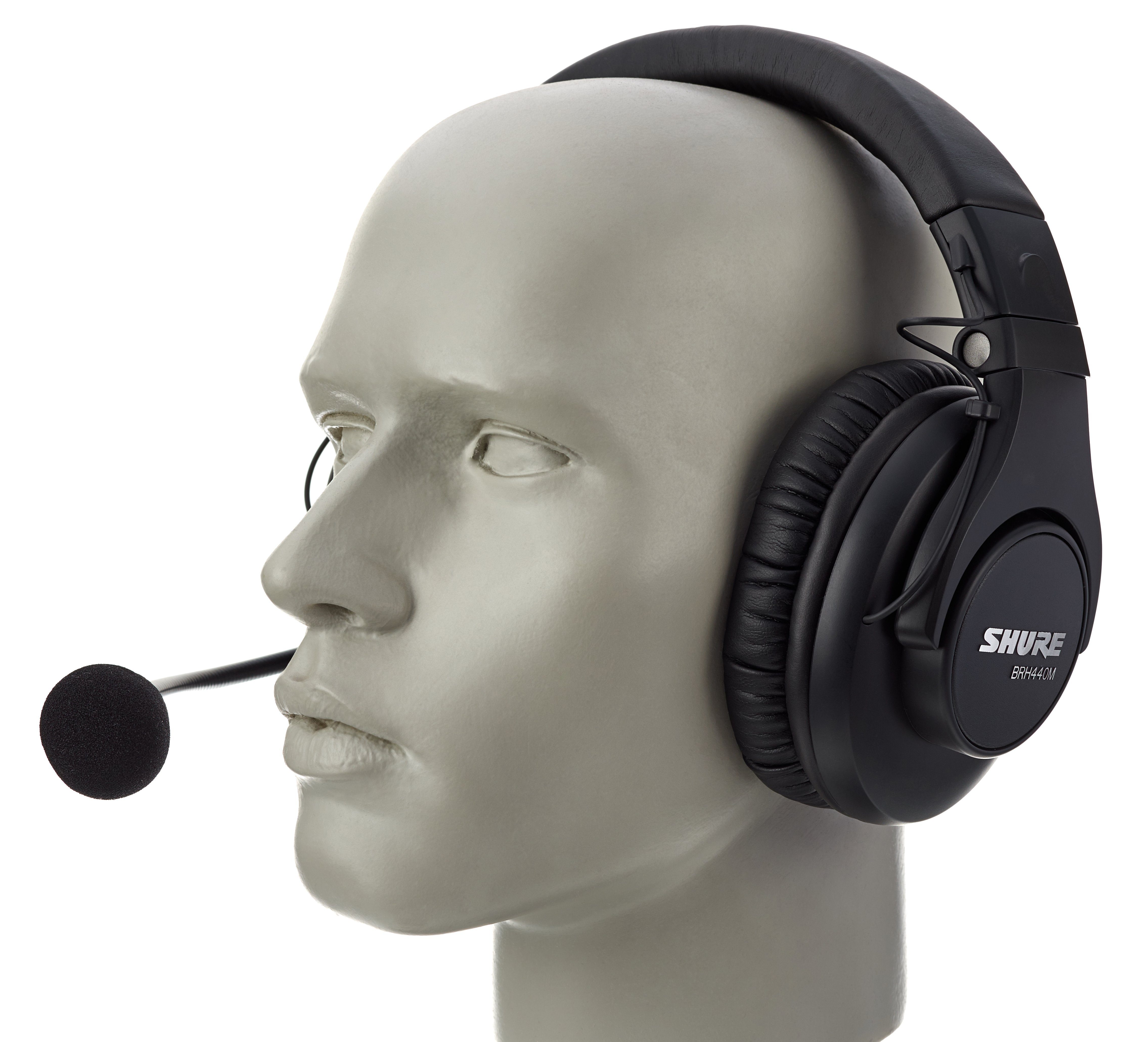 Mit dem BRH440M hat Shure ein erstklassiges Sprecher-Headset im Angebot. Das in elegantem, matten schwarz gehaltene System aus beidseitigem Kopfhörer und schwenkbarem Bügelmikrofon macht auf allen Tribünen, TV-Sets und anderen Übertragungsanwendungen eine ausgesprochen gute Figur. Das Headset ist in der Anwendung sehr einfach gestaltet: Die Ohrschalen lassen sich leicht verdrehen und kippen, zudem können sie für die Aufbewahrung und den Transport eingeklappt werden. Der Kopfbügel kann leicht auseinandergezogen werden, weshalb schnelles Auf- und Absetzen kein Problem darstellt. Der schwenkbare Mikrofonarm ist sehr leichtgängig, wobei die eingestellte Position selbst bei heftiger Kopfbewegung felsenfest erhalten bleibt. Der Kopfbügel ist beidseitig in der Länge verstellbar. Für die Anpassung an den Anwenderkopf stehen jeweils zehn Rasterstufen zur Verfügung, die jeweils etwa 4,6 cm Anpassweg entsprechen. Das reicht für alle Anwenderköpfe.