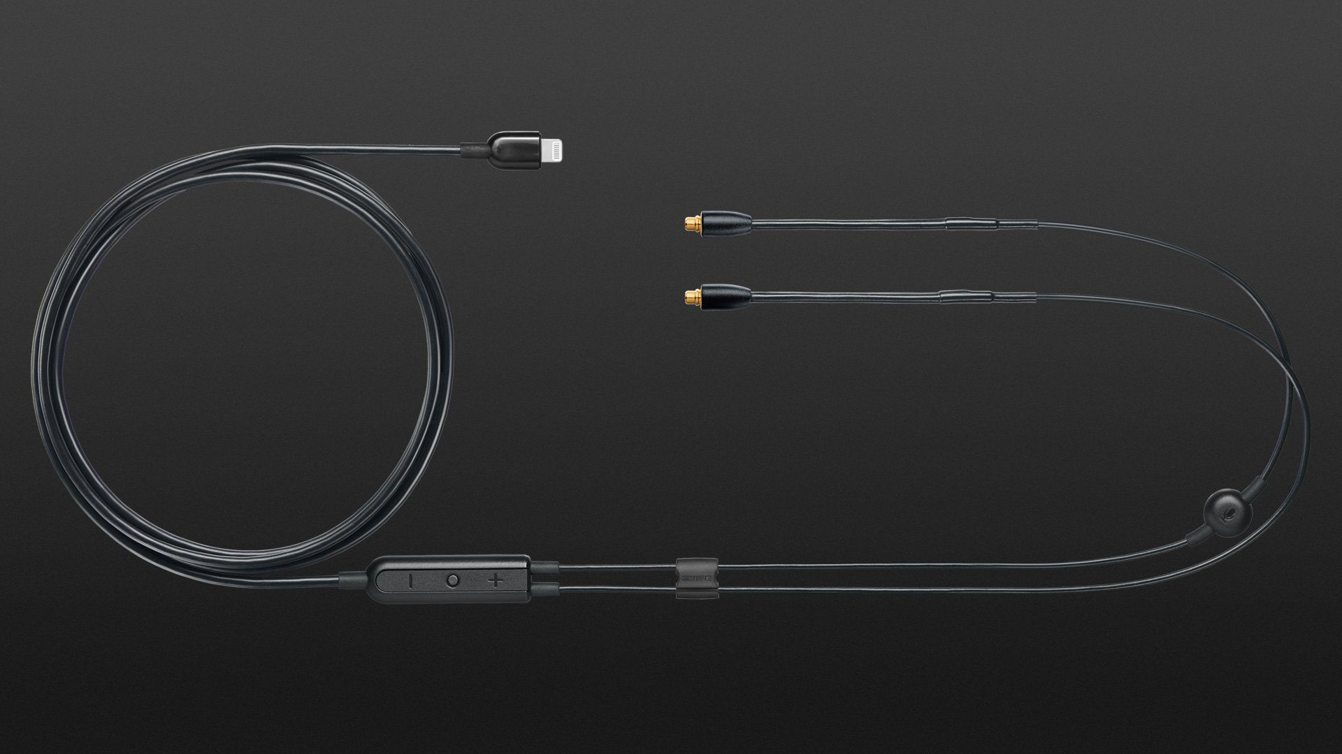 Das Schöne an der aktuellen SE-In-Ear-Serie (SE215 – SE846) von Shure ist, dass sie mit auswechselbaren Kabeln ausgestattet sind. Damit ist nicht nur der Austausch defekter Kabel schnell und einfach erledigt, sondern es ist auch möglich, die In-Ear-Serie mit alternativen Steckerformen oder Zusatzfunktionen auszustatten. Im Fall des hier getesteten RMCE-LTG befähigt dieses Kabel den SE-In-Ears den Anschluss an Apple-Produkte via Lightning-Stecker inklusive Freisprech-Mikrofon und Mediensteuerung.