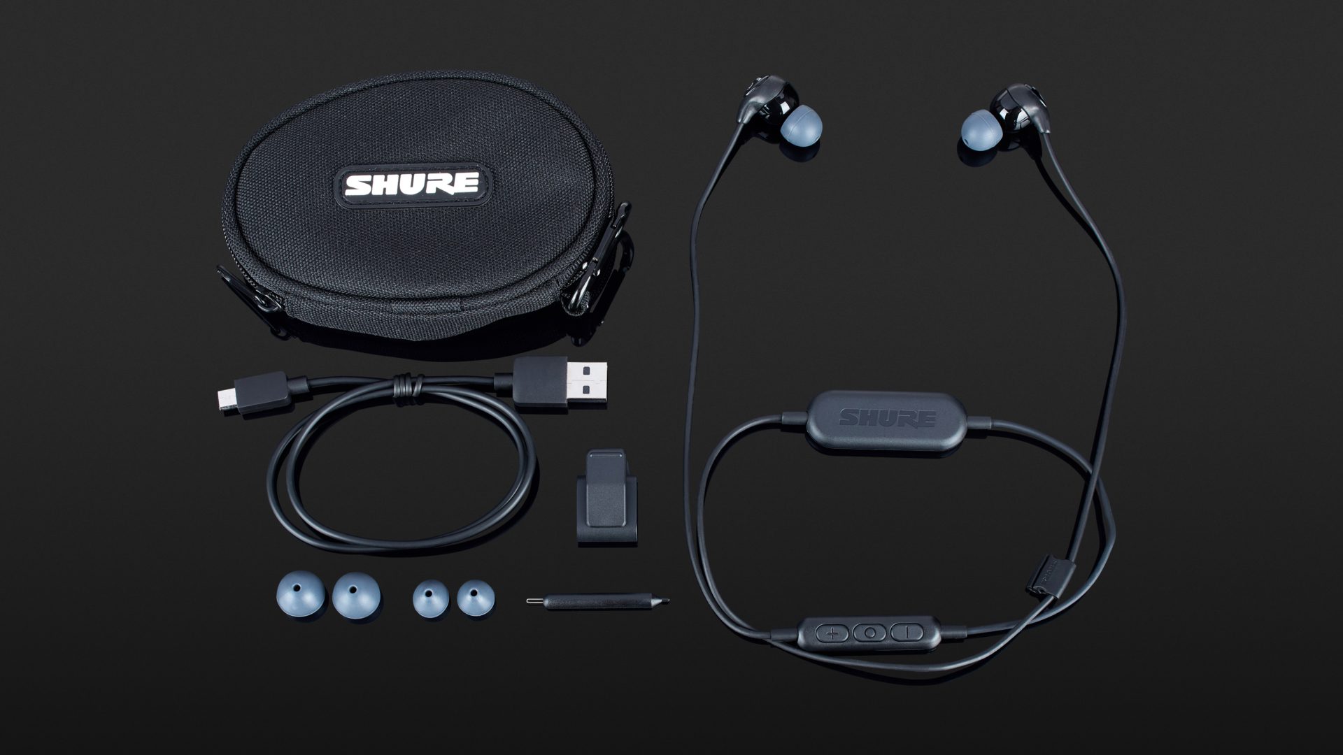 Die SE112-BT1 kommen mit drei verschieden großen Ohrstöpseln und sollen mit der passenden Ohrkappe eine passive Geräuschisolierung von bis zu 37 dB liefern. Zusatzinfo: Da die Shure-Ohrstöpsel den Gehörgang möglichst luftdicht verschließen müssen, um optimalen Bass und maximale Geräuschisolierung zu erzielen, sind im Zweifel kleinere Ohrstöpsel als bei anderen Modellen die richtigen. Die Ohrhörer sind so geformt, dass die Kopfhörer mit dem Kabel nach oben in den Ohren stecken und das Verbindungskabel zwischen linkem und rechtem Ohrhörer vor oder hinter dem Kopf getragen werden kann.