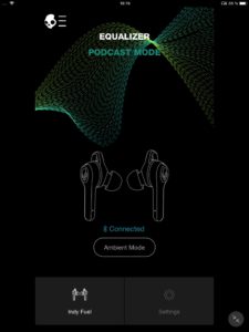 Da die In-Ears konstruktionsbedingt über recht hohe Isolationseigenschaften verfügen, soll der Umgebungsmodus insbesondere in urbanen Regionen dazu dienen die Wahrnehmung der Umwelt zu verbessern. Hierzu werden Außengeräusche über die Mikrofone verstärkt, was eine Orientierung ermöglicht. Bei pausierender Wiedergabe sind zudem Stimmen und Durchsagen verständlich, ohne dass die Hörer herausgenommen werden müssen, auch wenn ein wahrnehmbares Grundrauschen besteht. (De-)aktiviert werden kann das Ambient Listening einerseits an den Hörern durch einfaches Tippen und ein nachfolgendes Halten. Darüber hinaus werden die Indy Fuel von der kostenlosen Skullcandy App unterstützt, die ebenfalls eine Option zum Ein- und Ausschalten beinhaltet. Ansonsten erscheint die App zum momentanen Zeitpunkt noch ausbaufähig, da keine weiteren Funktionen wie eine Akkustandsanzeige oder die Option eigene EQ-Einstellungen vornehmen zu können bestehen. Der genutzte EQ-Modus wird zwar angezeigt, ein Umschalten ist über die App aber nicht möglich. Zur Verfügung stehen jedoch hilfreiche Informationen wie ein User Guide und eine Anleitung zur Einrichtung der optionalen Tracking-Funktion per Tile-App, wodurch die Hörer im Bedarfsfall schnell auffindbar sind.