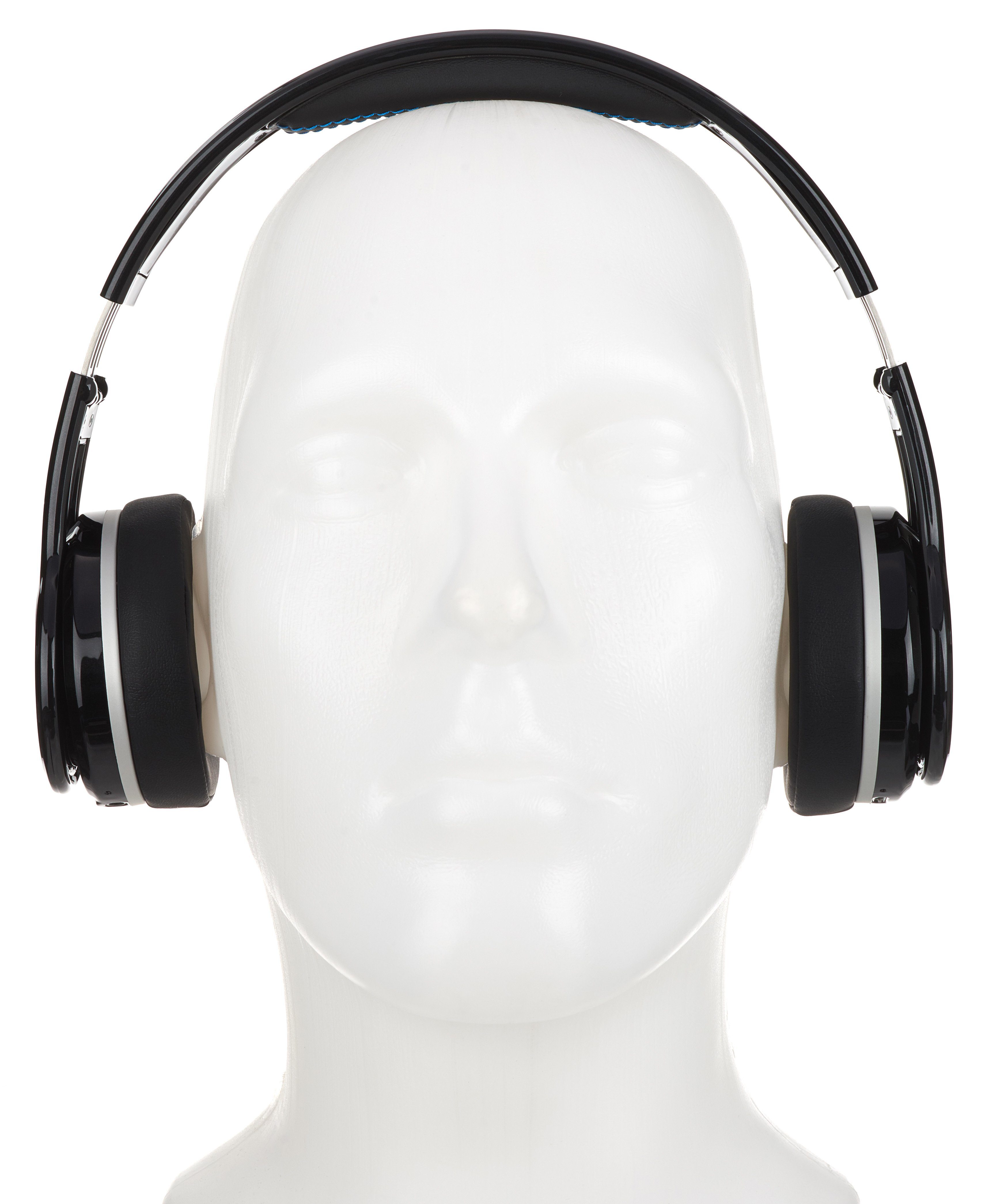 Der SYNC Wireless ist auf jeden Fall travel-tauglich – selbst für den einen 10-Stunden-Cross-Atlantik-Flug. Das Gesamtgewicht ist angenehm leicht und bei längerem Tragen wird er nicht gleich zum Neckbreaker. Die On-Ear-Bügelkonstruktion sitzt tight und die soften Leder-Ear-Pads sind smooth auf den Ohren. Das äußere Kunstoff-Finish fühlt sich allerdings ein wenig nach 50-Cent-Gewinn im „Candy Shop“ an, wenn man sonst eher robuste Studiokopfhörer gewöhnt ist. Die schwarze Lackierung zieht Fingerabdrücke an, wohl deswegen hat SMS Audio noch ein blaues Putztüchlein für Gangster beigelegt. Über zwei Scharniere kann man Headphone-Origami betreiben und die beiden On-Ear-Hörer platzsparend nach Innen falten. Beim Einklappen gibt es an den kleinen Gelenken kurze Knackser, die wie die durchgerockten Kniegelenke von Dirk Nowitzki klingen. Insgesamt ist der Mechanismus aber robust, nur an den Sound muss man sich eben gewöhnen.