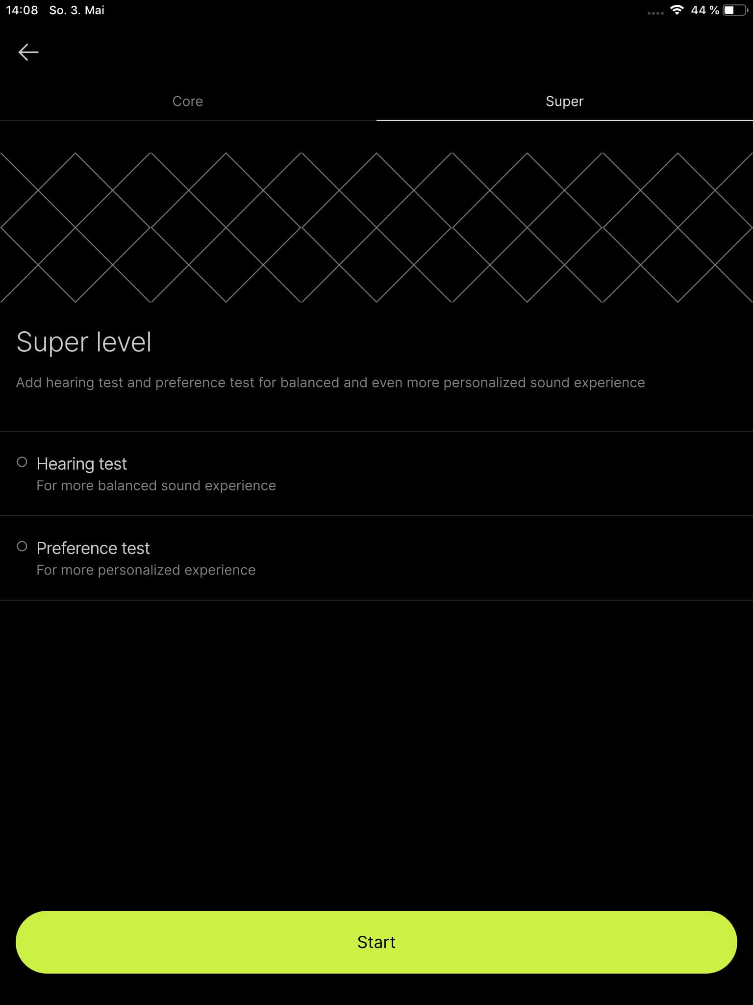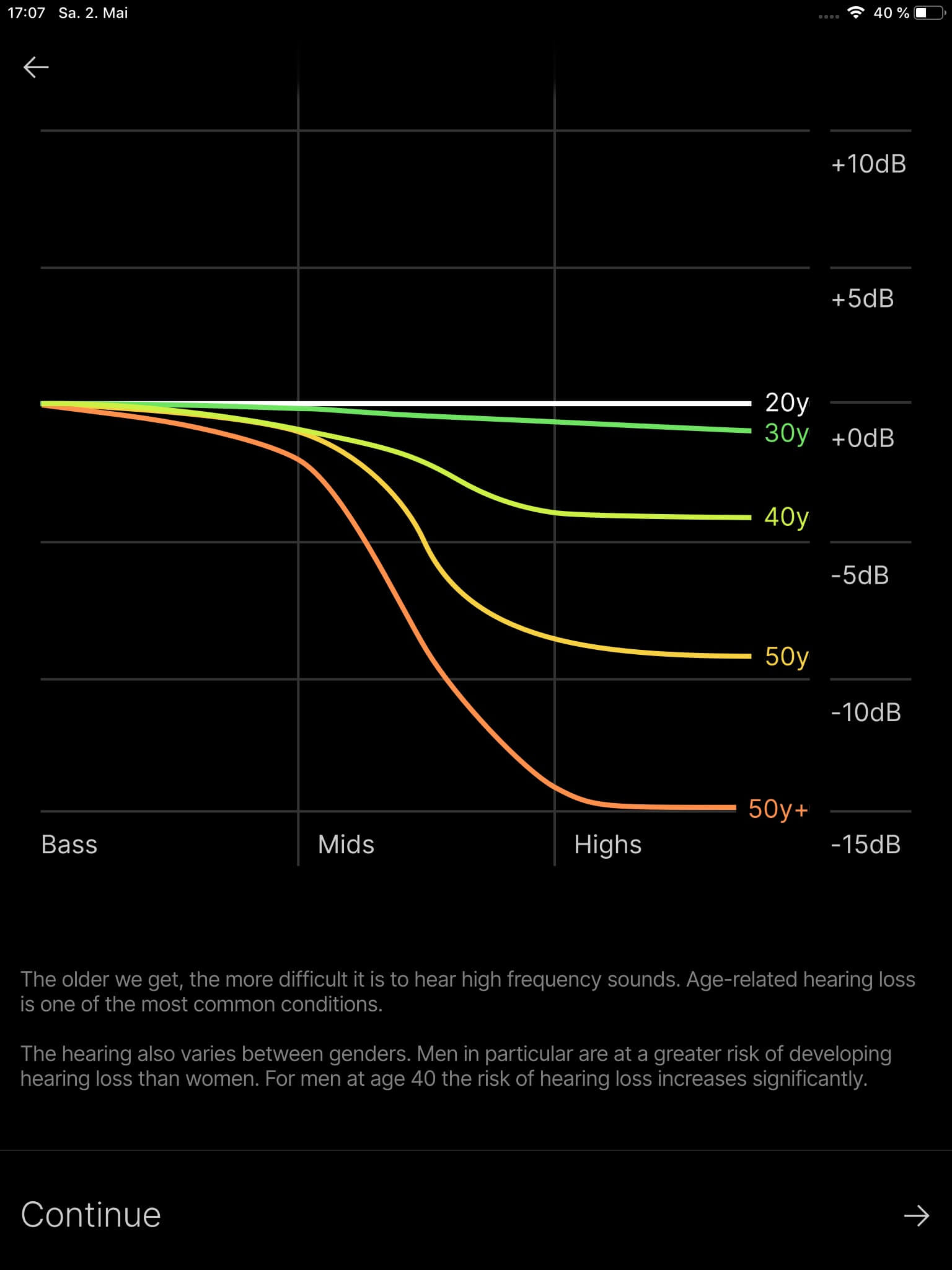 Ist über die SoundID App ein Account erstellt, der Angaben zum Alter und Geschlecht enthält, erfolgt die Auswahl des genutzten Kopfhörers. Die Software unterstützt bereits über 360 Modelle, die stetig ergänzt werden, da als erstes eine Linearisierung des Hörers vorgenommen wird. Als Ausgangspunkt für die Personalisierung dient somit ein neutraler Klang, wodurch das SoundID-Profil später auch mit unterschiedlichen Kopfhörermodellen genutzt werden kann. Die hierbei verwendete Technologie entstammt der Reference 4 Software und wurde ebenfalls für die mittlerweile eingestellte True-Fi Linearisierungs-Software für Kopfhörer (zum Test) genutzt. Im Anschluss werden mithilfe eines A/B-Hörvergleichs persönliche Klangpräferenzen wie eine neutrale, bass- oder höhenbetonte Ausrichtung ermittelt. Wer möchte, kann zusätzlich noch einen zweiten Hörtest absolvieren, der das Hörvermögen analysiert, um beispielsweise eine altersbedingte Abnahme oder Disbalancen zwischen linkem und rechtem Ohr auszugleichen. Das auf dieser Grundlage basierende Klangprofil ist fortan im Account hinterlegt und somit am Rechner nutzbar.