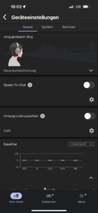 In der App findet sich, neben der Möglichkeit zu Firmware-Updates (Versionsstand bei Test: 1.20), unter anderem der erwähnte speicherbare Equalizer mit sechs Bändern für geschmackliche Anpassungen und einer unterstützenden Funktion, die Laien hin zum gewünschten Klangbild führen soll. Ebenfalls justieren lassen sich hier die Parameter für das …