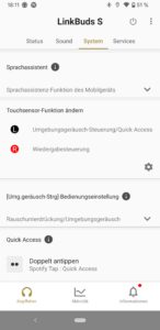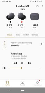 Wie erwähnt stellen die Sony Link Buds S eine Vielzahl an Komfortfunktionen zur Verfügung. Das setzt aber die Installation der Sony Headphones Connect App (iOS, Android) voraus. Hier ist bei der Ersteinrichtung Geduld gefragt, denn so oft, wie man hier Einwilligungs-, Zugriffsrechte- oder Datenverarbeitungsanfragen zu Gesicht bekommt, dazu angehalten wird, diese konzentriert durchzulesen und zuzustimmen, haben wir noch nicht erlebt. Quälende Minuten später darf man dann endlich Hand anlegen, und so erlaubt die App neben Firmware-Updates eine umfassende Konfiguration der Funktionalitäten einschließlich einer Steuerung von Pegel und Musikwiedergabe. Die genannten Touch-Funktionen lassen sich dort in Gruppen konfigurieren. So kann man auch eine Lautstärkesteuerung realisieren, aber leider nicht für links oder rechts getrennt.