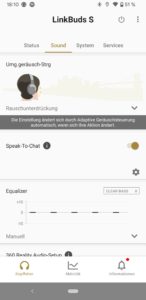 Eine weitere Besonderheit der LinkBuds S sind die Automatikfunktionen, die wir auch von den WF-1000XM4 kennen. So kann der Transparenzmodus nicht nur per Berührung ein- und ausgeschaltet werden, sondern auch durch Sprache selbst („Speak to Chat“). Die Automatik reagiert nicht unmittelbar, aber schnell genug. Dazu gibt es regelbare Empfindlichkeiten in der App sowie eine mögliche automatische Rückfallzeit zum Noise Cancelling inklusive eines automatischen Startens und Fortsetzen der Musikwiedergabe.