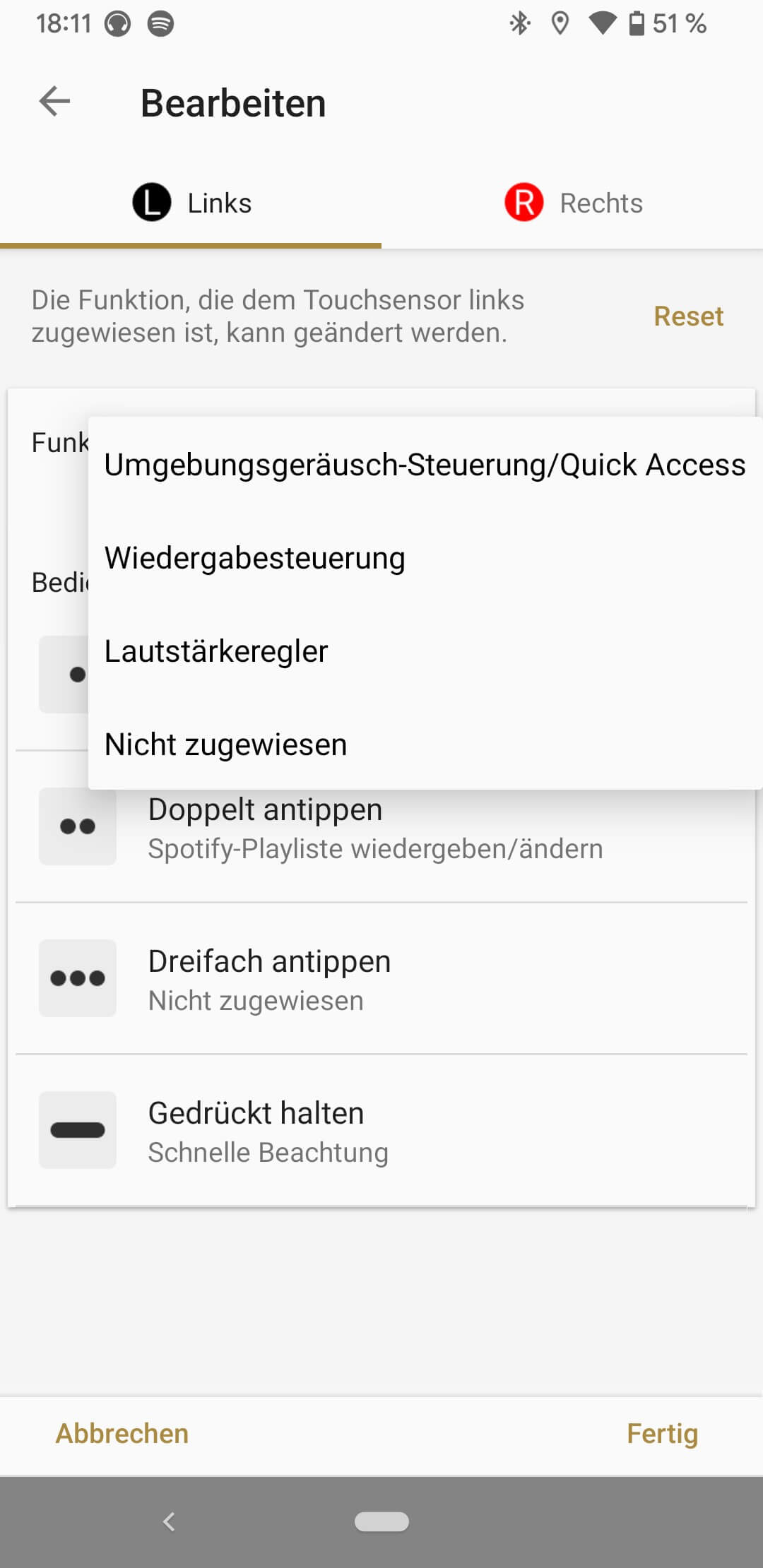 Zudem lassen sich die Noise-Cancelling-Betriebsarten (siehe unten) durch Bewegungsmuster ermitteln und selbstständig umschalten. Gleiches gilt für bestimmte Standorte. So lässt sich das Noise Cancelling beim Betreten des Bahnhofes automatisch aktivieren.
