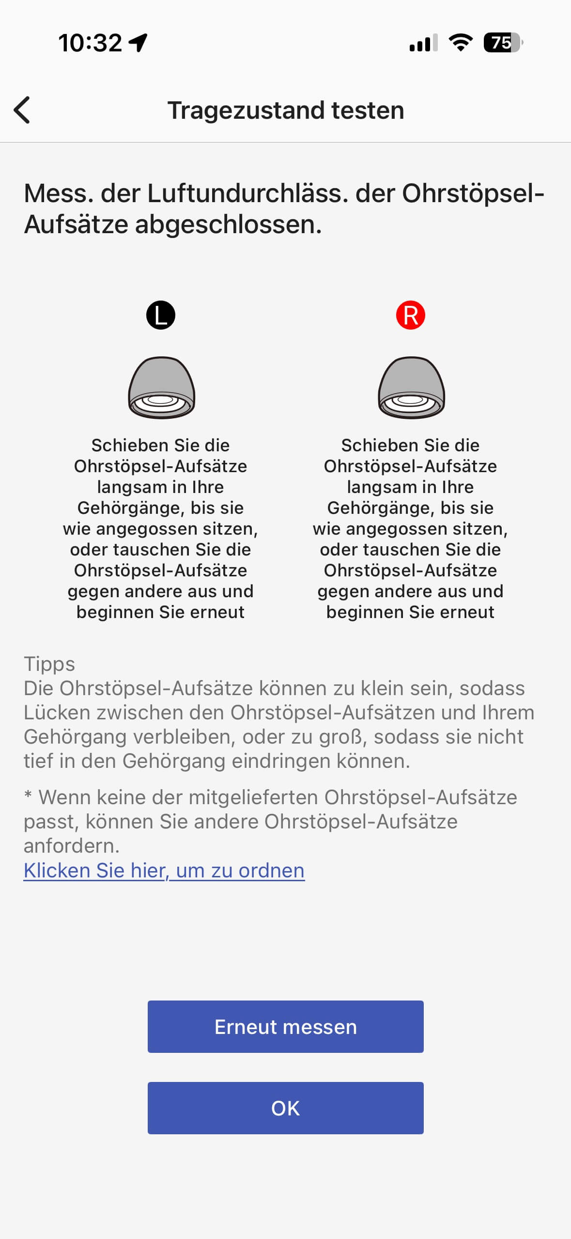 Gutes ANC beginnt mit dem richtigen Sitz. Ein App-gestützter Dichtigkeitstest hilft dabei. Ist der Sitz korrekt und das ANC aktiviert, setzt eine angenehme Ruhe ein – ohne Taucherglocken-Feeling.