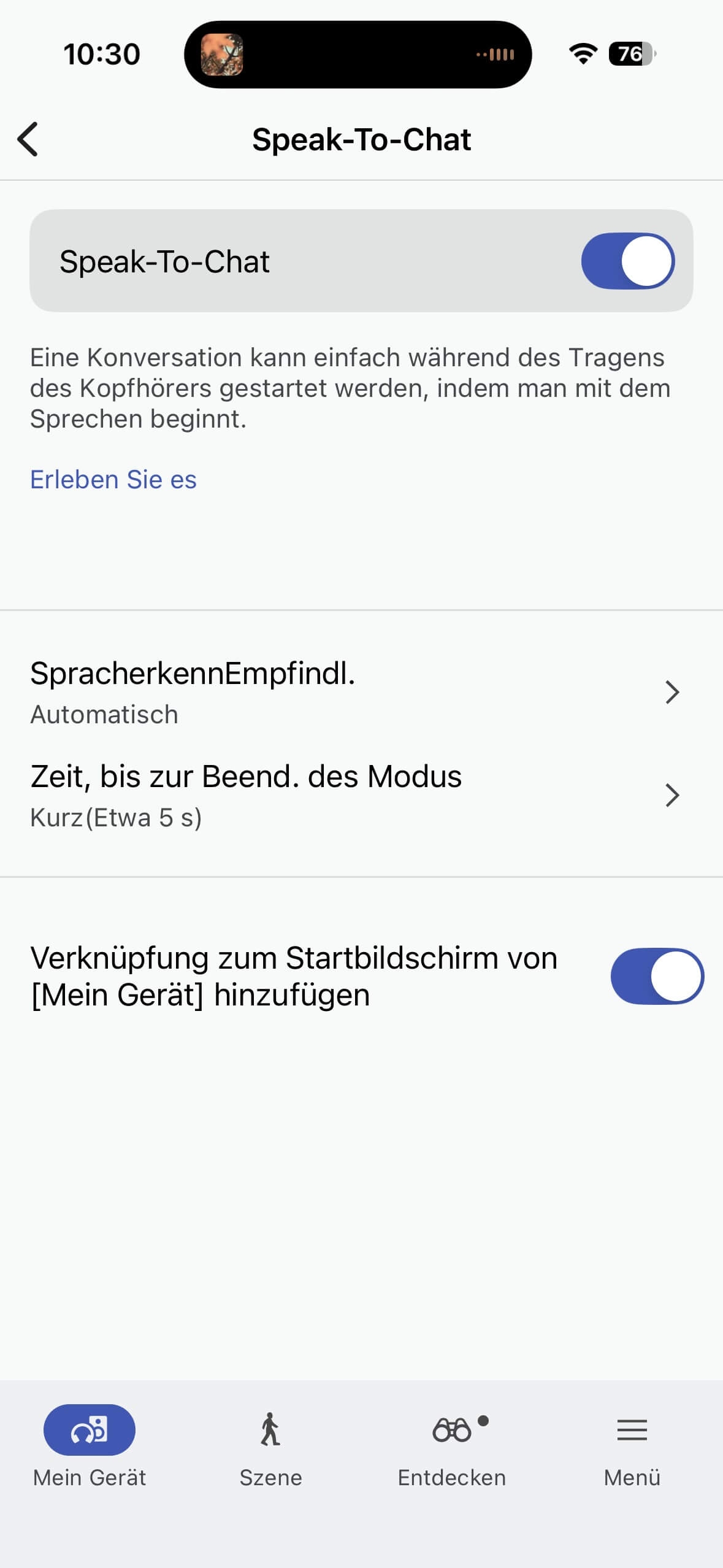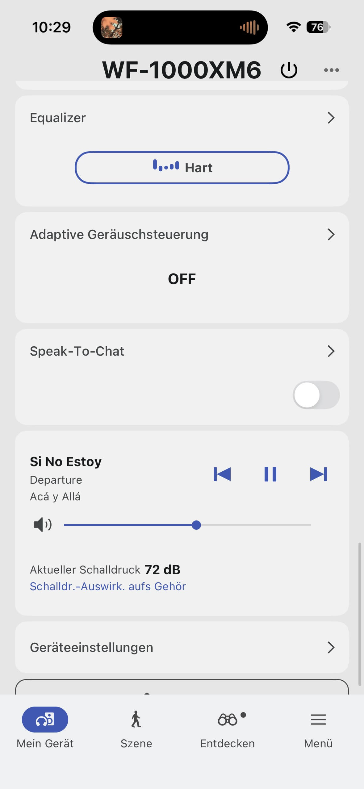 Die Feature-Liste ist aber auch sehr lang: EQ-Presets, 10-Band-EQ, Speak-to-Chat, Multipoint, Passteste und Soundoptimierungen, orts- und bewegungsabhängige Automatiken. Manches davon ist nützlich, anderes dagegen wirkt etwas verspielt. Man muss sich echt einarbeiten, um alles aus dem Produkt herauszubekommen.