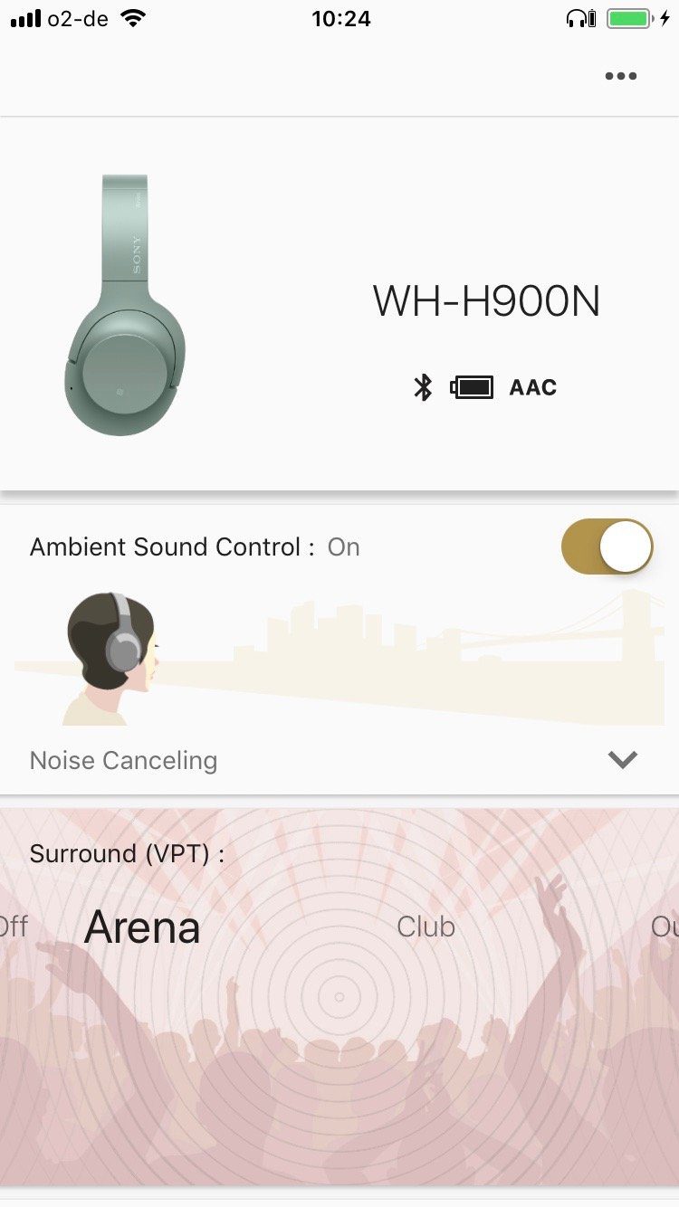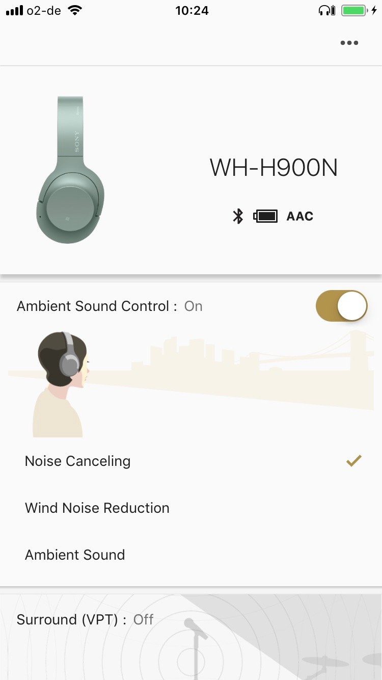 Über die App „Headphone Connect“ (für iOS und Android) lässt sich die Ambient-Sound-Anpassung zwischen einer normalen und einer Variante mit Windgeräuschunterdrückung weiter spezifizieren. Das Noise Cancelling selbst, das übrigens auch im kabelgebundenen Betrieb funktioniert, wirkt vor allem im Bereich der tiefen Frequenzen. Es sorgt durchaus für einen klar geringeren Pegel von Umgebungsgeräuschen. Allerdings ist die Isolierung von der Umwelt weniger effektiv als etwa im WH-1000XM2.