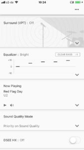 Aus etlichen anderen Sony-Modellen bekannt ist die zuschaltbare Raumsimulation, die das Klangbild in vier wählbare virtuelle Räume versetzt. Auch mit diesem Effekt kann ich nichts anfangen, denn in aller Regel wirkt er kontraproduktiv und führt zu einem Verlust der Definition. Deutlich brauchbarer ist hingegen der Equalizer, der fünf Mitten- und Höhenbänder, sowie eine regelbare Bassabstimmung bietet. Verabschiedet man sich von der Idee einer linearen Klangwiedergabe (die im Übrigen durch die eingesetzten Codecs keineswegs bei neutraler Einstellung gegeben sein muss), kann man sich hier den Klang wunschgemäß und Genre-spezifisch einstellen. Insbesondere im Mobilbetrieb und bei Stilen wie Hip-Hop oder EDM kann ein Bass Boost oder eine Loudness-Kurve nochmals für mehr Hörspaß sorgen.