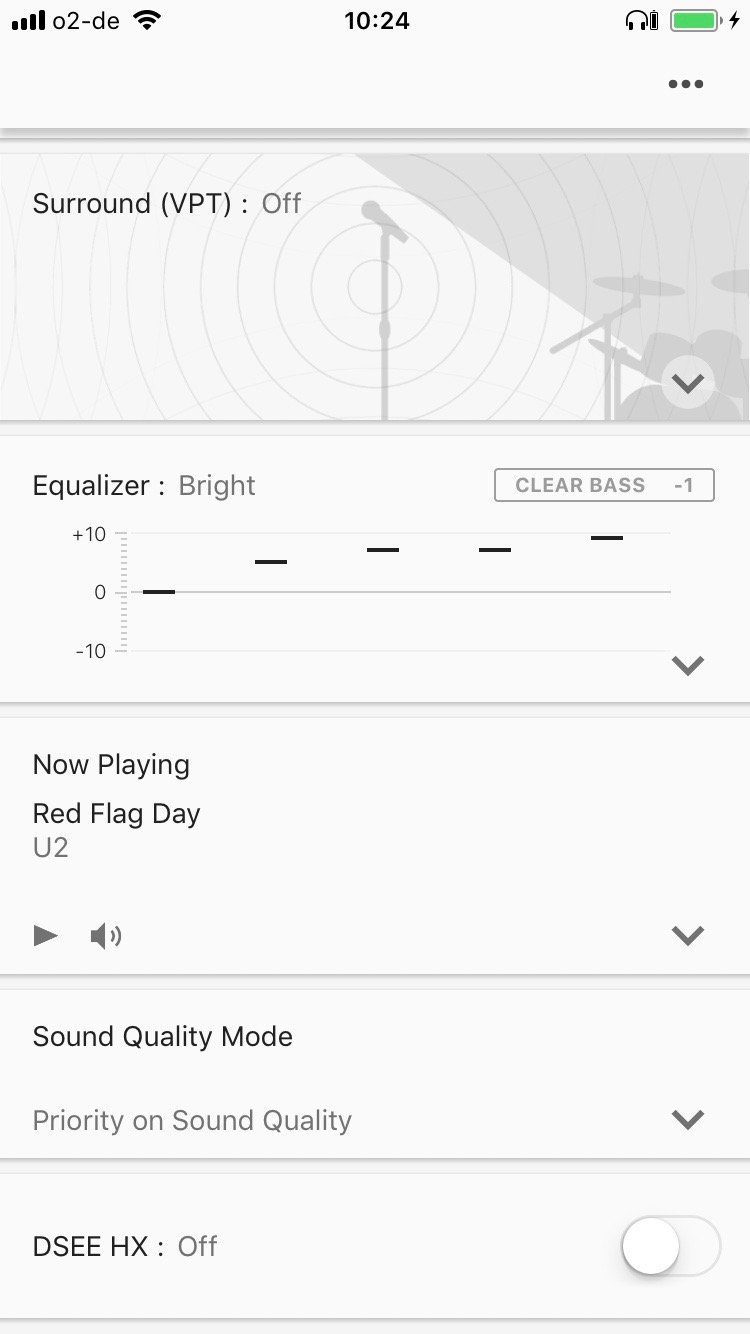 Die Funktion „DSEE HX“ soll bei der Audiokompression verlorene hohe Frequenzen rekonstruieren. Abgesehen von einem oft deutlichen Lautstärkesprung beim Wechsel zwischen ein- und ausgeschaltetem Zustand, kann ich den Klangzugewinn dieser Funktion nicht bestätigen.