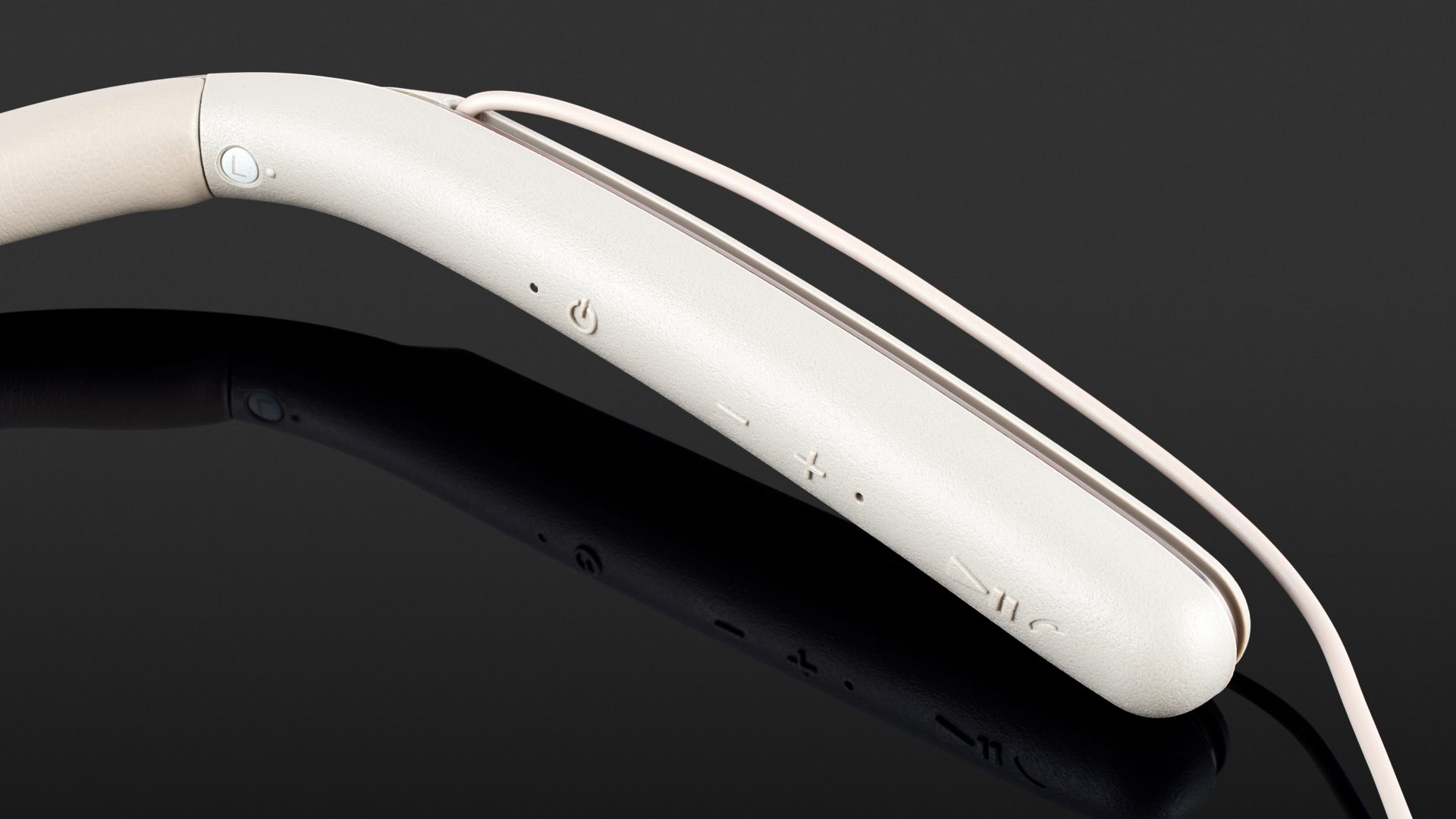Die Innenseite des gepolsterten Nackenbügels birgt verschiedene Bedienelemente, deren Position man nach kurzer Zeit verinnerlicht. Neben dem Ein-/Ausschalter, der auch für das Pairing und eine Batteriestandsansage zuständig ist, befindet sich links der Start-/Pause-Taster, mit dem man auch zum nächsten Titel und den Sprachassistenten seines Smartphones aufruft sowie Anrufe entgegennehmen kann. Etwas darüber finden sich die beiden Taster zur Lautstärkesteuerung. Rechts am Bügel lassen sich die so genannten „Ambient Sound“-Modi umschalten (siehe unten).