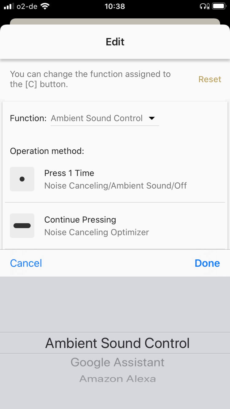 Je nach Profil, aber jederzeit über App manuell änderbar, lassen sich über den Ambient-Sound-Modus Umgebungsgeräusche auf die Lautsprecher einspeisen, bei Bedarf mit Fokus auf den Sprachbereich. Hiermit geht man also den umgekehrten Weg und hebt die Isolation von der Umgebung wieder auf – sinnvoll etwa für wichtige Durchsagen an Bahnstationen oder bei Gesprächen. Ambient Sound schaltet man in der Praxis über den zugehörigen Taster ein und aus. Eine Touch-Funktion für ein temporäres Aktivieren dieser Funktion, wie man es vom WF-1000XM3 oder WH-1000XM3 kennt, würde ich mir für die nächste Gerätegeneration wünschen.