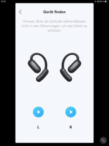 Neben der Touch-Steuerung lassen sich über die App akustische Rückmeldungen und ein Timer konfigurieren. Darüber hinaus zählen ein Balance-Regler, der Gaming-Modus, Firmware-Aktualisierungen und eine Suchfunktion, die per Piepton beim Auffinden der Hörer behilflich sein kann, zur Ausstattung. Auf Android-Geräten lässt sich zusätzlich noch LDAC aktivieren, was jedoch ein Firmware-Update voraussetzt.