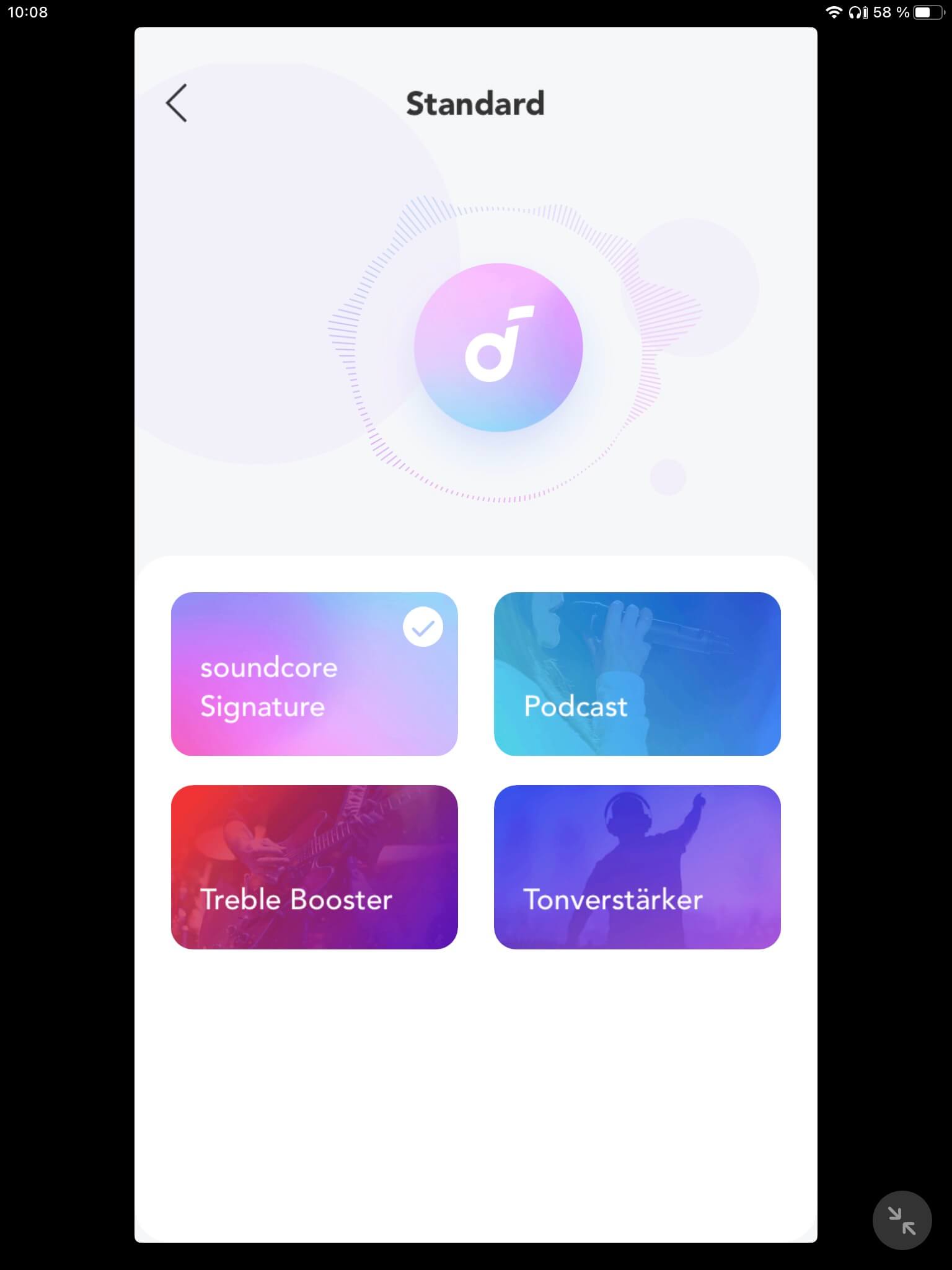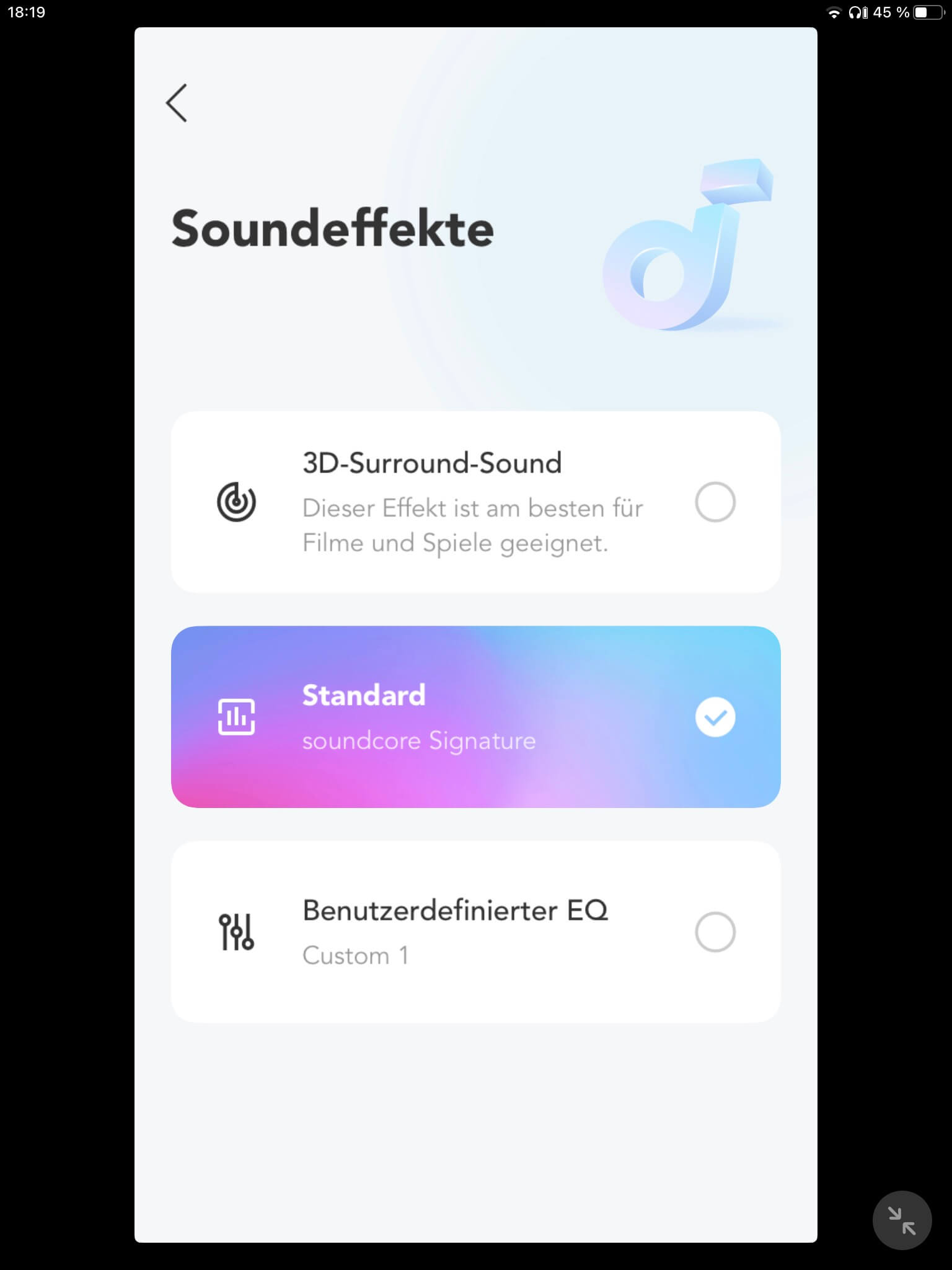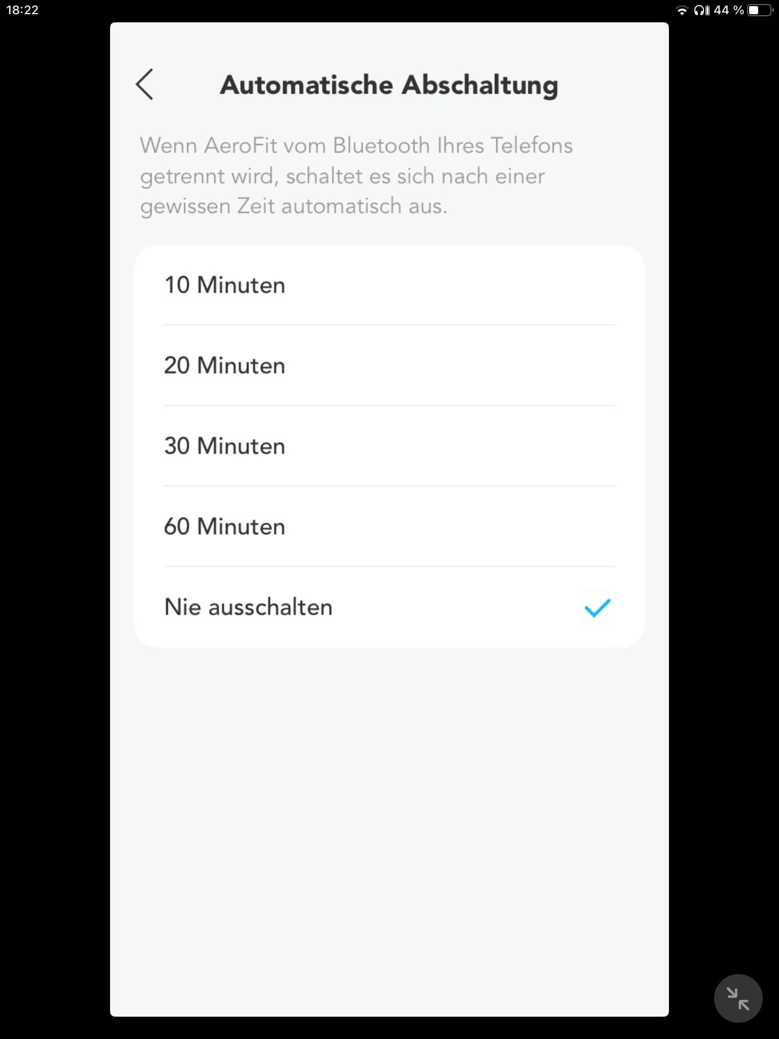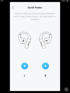 Neben der Möglichkeit, die Touch-Steuerung zu konfigurieren, bietet die App-Anbindung (Android und iOS) der AeroFit eine Klangregelung mit drei Bereichen: Als erste Option kann der Surround Sound (de-)aktiviert werden. Das mittlere Segment stellt hingegen ergänzend zum Grundklang mit „Podcast“, „Treble Booster“ und „Tonverstärker“ drei vorkonfigurierte Settings zur Auswahl. Es folgt ein EQ, der acht Bänder für eigene Einstellungen zur Verfügung stellt, die als Presets gespeichert werden können. Hierbei ist jedoch aufgefallen, dass die EQ-Sektion mit einem merklichen Lautstärkeverlust arbeitet, was bei anderen Bluetooth-Hörern des Herstellers nicht der Fall ist und hoffentlich noch durch ein Firmware-Update behoben wird. Sehr gut umgesetzt wurde, dass in den Hörereinstellungen ein Balance-Regler zu finden ist, wodurch sich Abweichungen bei der Trageposition, die durch natürliche Unterschiede zwischen den Ohren entstehen können, ausgleichen lassen. Auch ein Timer und eine Suchfunktion sind vorhanden, die per Piepton beim Auffinden der Hörer behilflich sein kann. Darüber hinaus lassen sich Multipoint-Verbindungen sowie akustische Rückmeldungen ein- oder ausschalten.